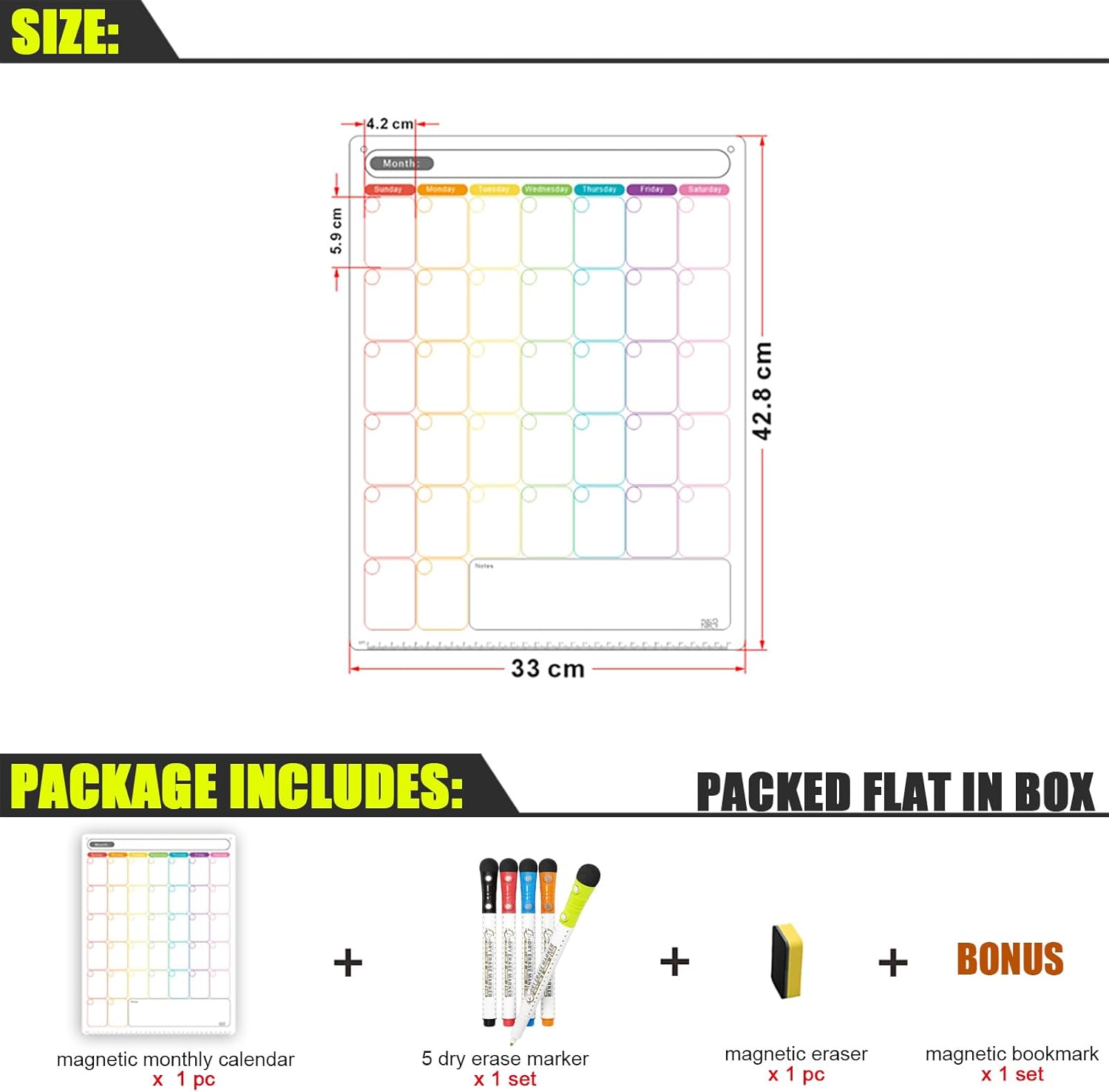🎁GREAT GIFT IDEA!! – Looking for a decent & pretty gift for Him / Her / Yourself? This magnetic dry erase calendar must be a great gift idea. Our refrigerator calendar is packed flat in a beautiful box for keeping its perfect condition, save you from headache to flatten it from a roll-packed, SAY NO TO ROLL PACKED!!! The package includes: 1 Magnetic Monthly Calendar (13.2″ x 16.9″), 5 Markers in different color, 1 Eraser & 1 bonus(1 Set of Magnetic Bookmark)
