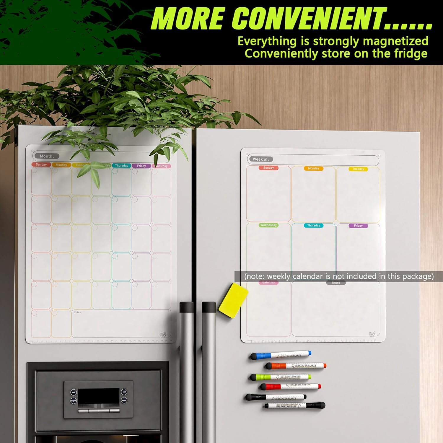✅Magnetic Calendar for Refrigerator with Stain Resistant Surface – Premium PET surface. It’s easy to be wiped clean without leaving any stain or ghosting. SAY NO TO STAIN & GHOSTING!!! We insist on the highest standard of stain resistance, ensure ink can be easily cleaned after more than 60 days on this calendar whiteboard, and calendar surface keeps in original condition even after being erased over 10000 times. Perfect for constant writing & erasing in your monthly planning.