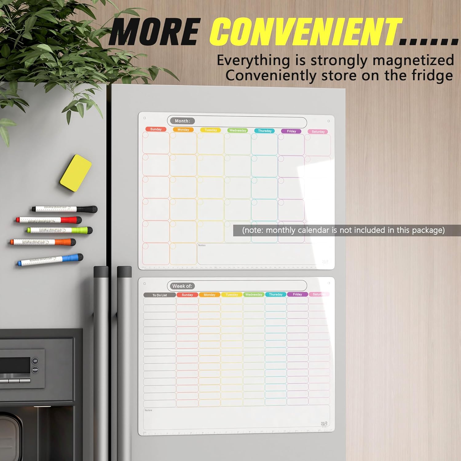 ✅EXTRA-THICK MAGNET – Our 0.8mm thickness magnet is almost double of other brands. Much stronger magnet and more durable & preventing from being bent. No worry about the calendar whiteboard falling off from fridge or moves from its place. Holes on top allow the calendar for wall hanging like whiteboard.