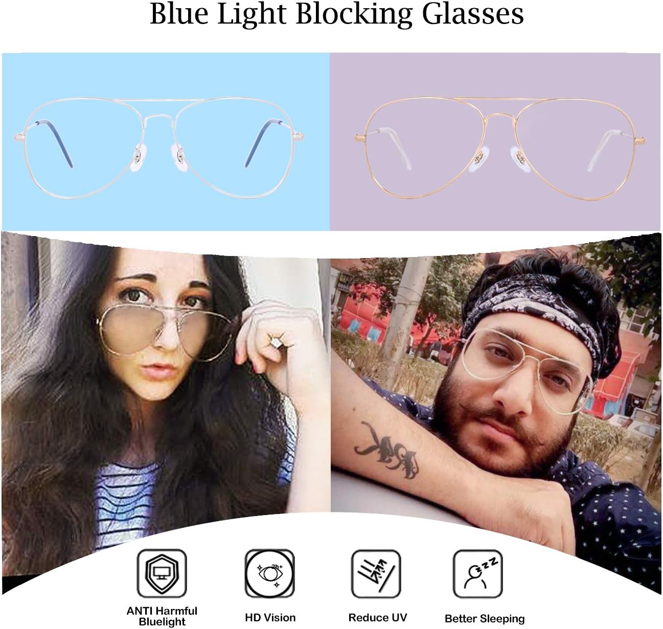 BEST BLUE LIGHT BLOCKING GLASSES–Anti harmful blue ray, provide all-day protection, against the detrimental effect high energy visible blue light and UV400.