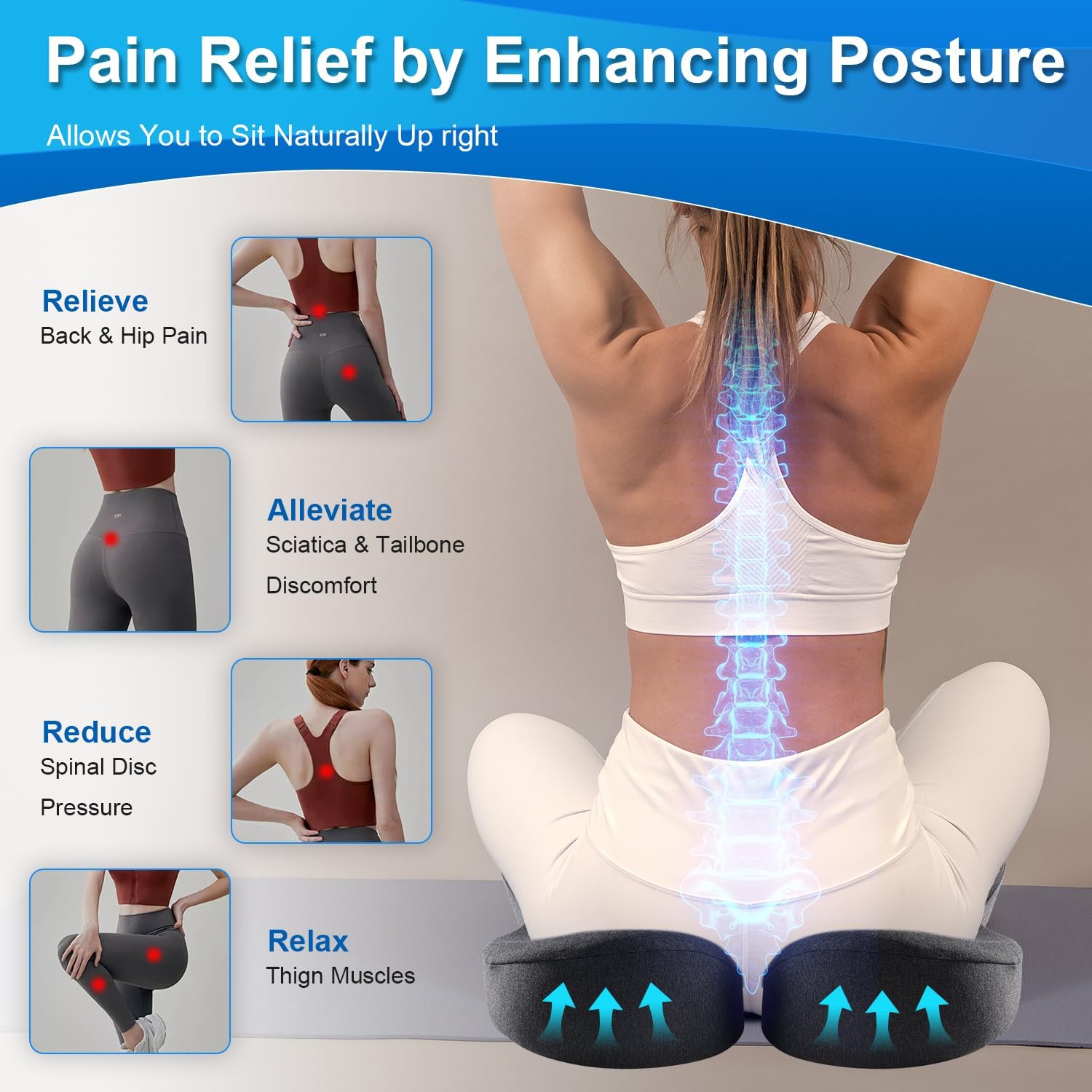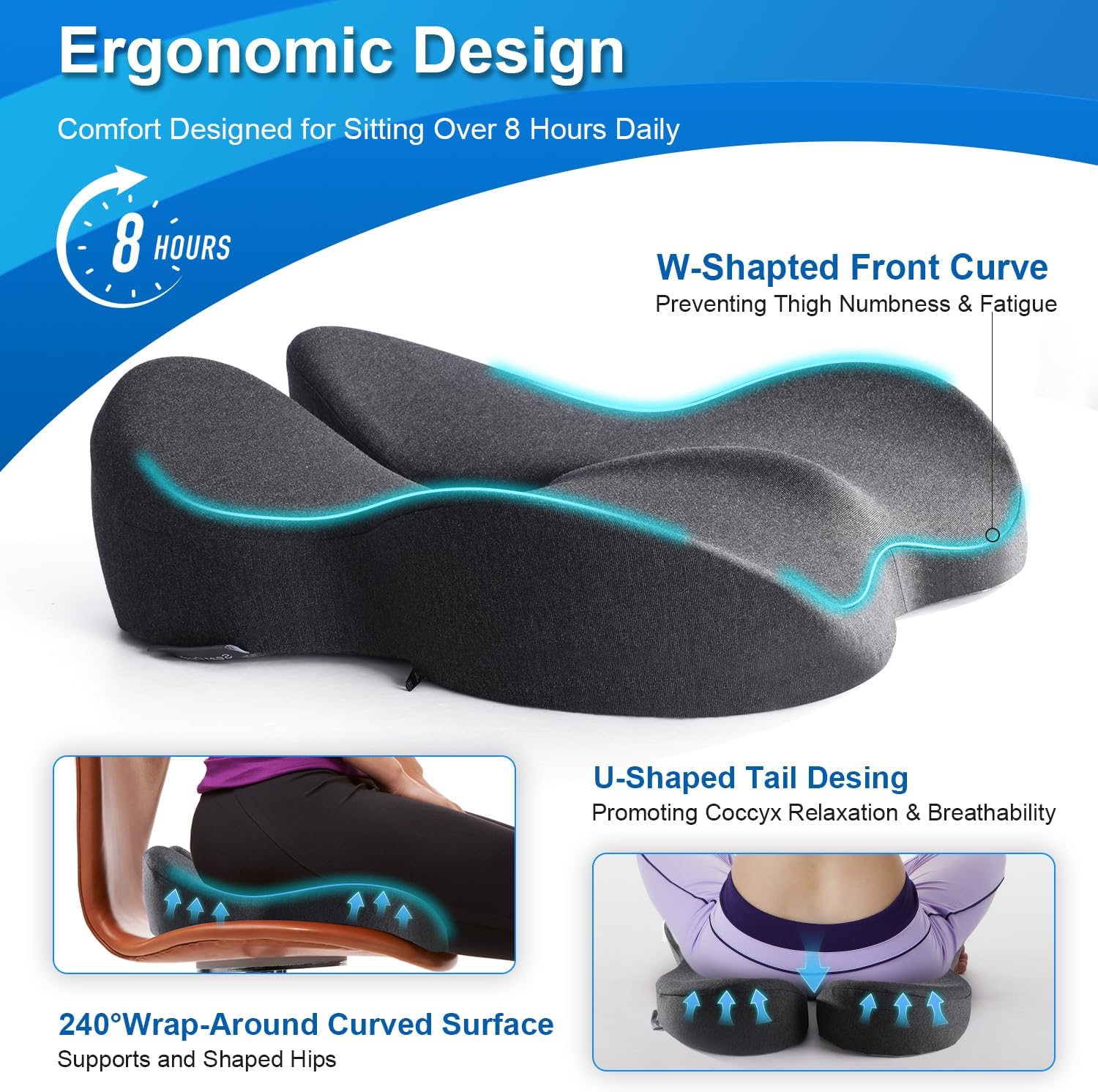 🕚【Tailbone &Sciatica】Our Seat Cushion for office chair provides all-day sitting comfort, it’s expertly crafted to enhance your posture and cradle your thighs and hips. It’s also a great option for sciatica.It’s your best partner for work or life!