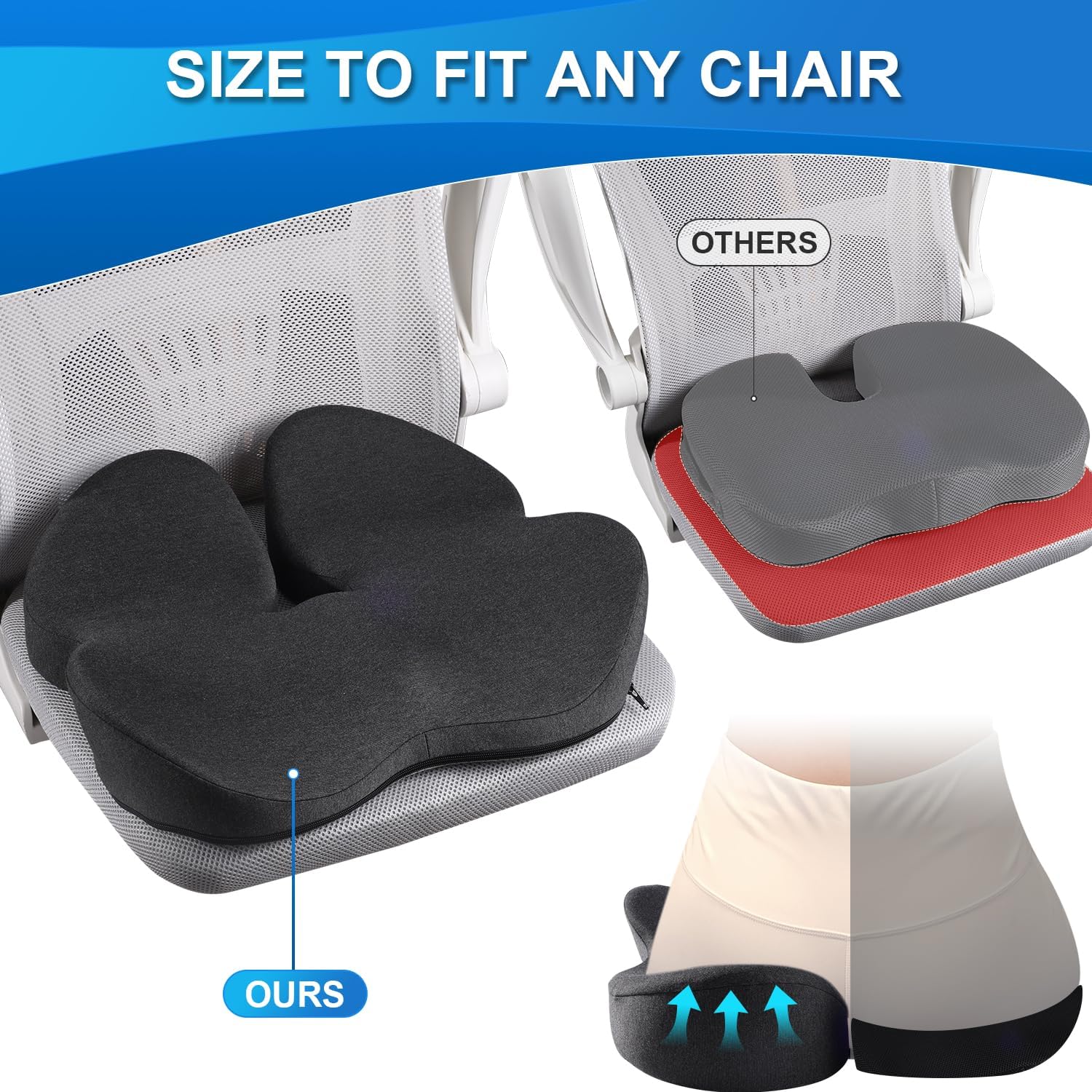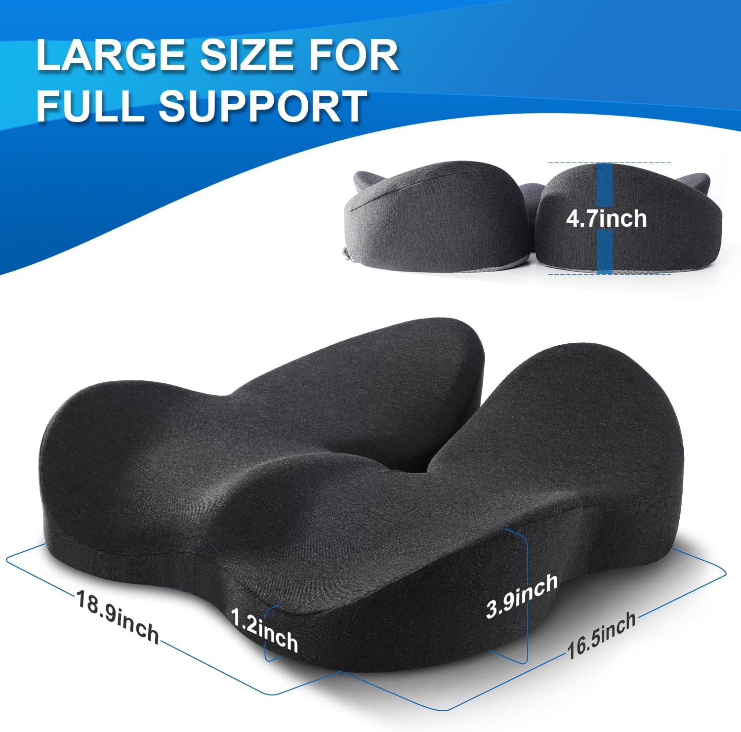 🥇【X Large Seat Cushion for All People】Our office chair cushion size is 19 x17 x5inches, which is larger than similar seat cushions. A regular seat cushion may be smaller than the seat, and you may feel an uncomfortable contour. Our larger size seat cushion for tailbone is closer to the size of the seat, providing you with full angle support to maintain good posture and natural spine curves.