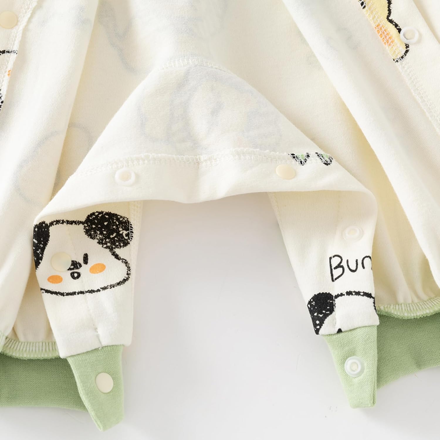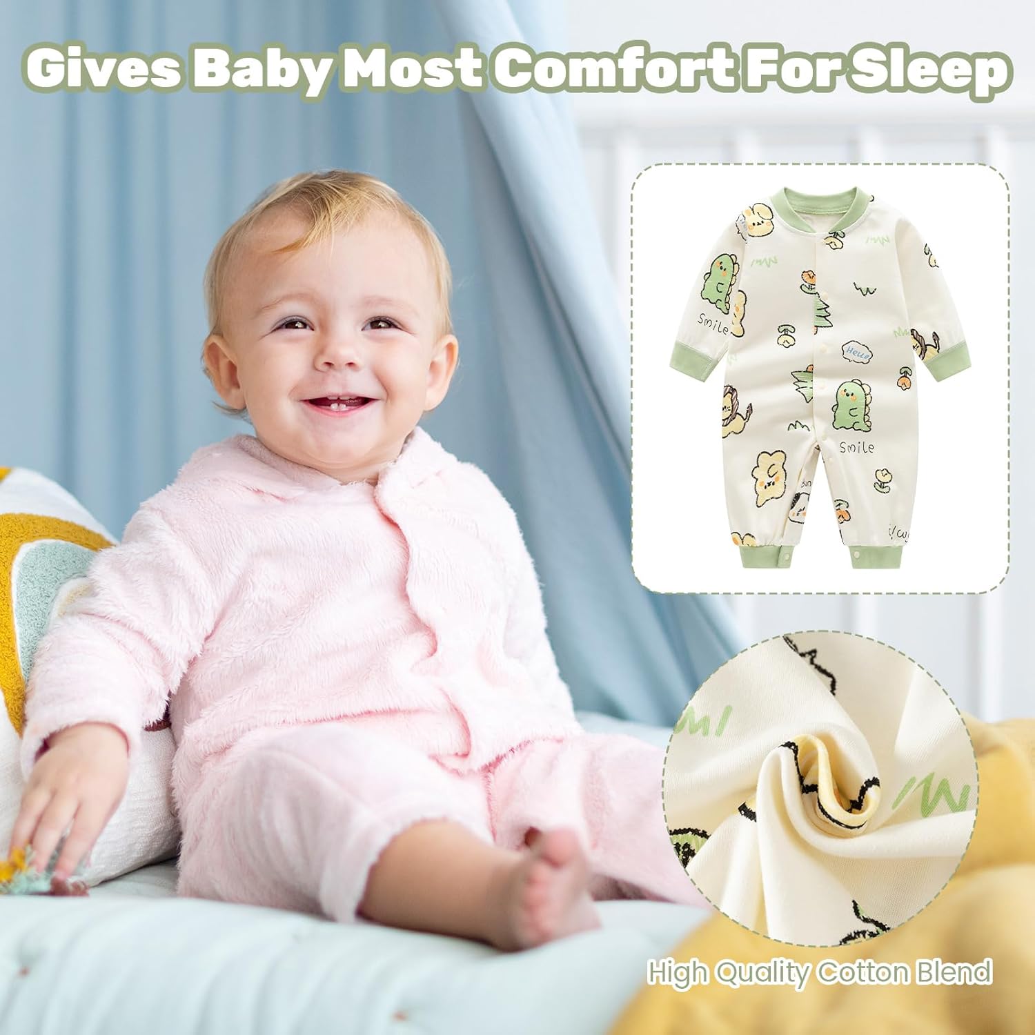Ne bouge pas au lavage,doux,tissus pas trop fin ni trop épais,confortable et pratique à mettre.Acheté en taille 9/12 pour bébé 7 mois.