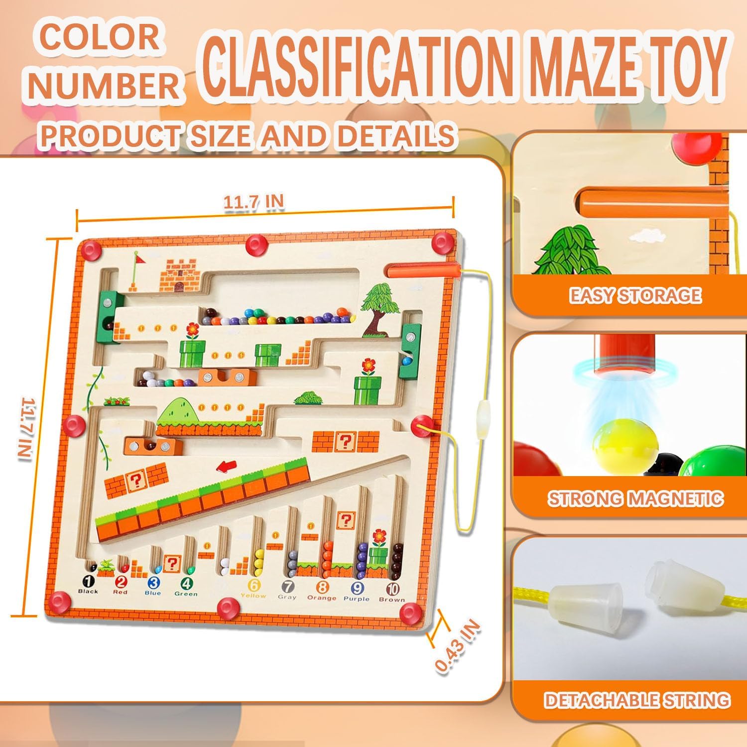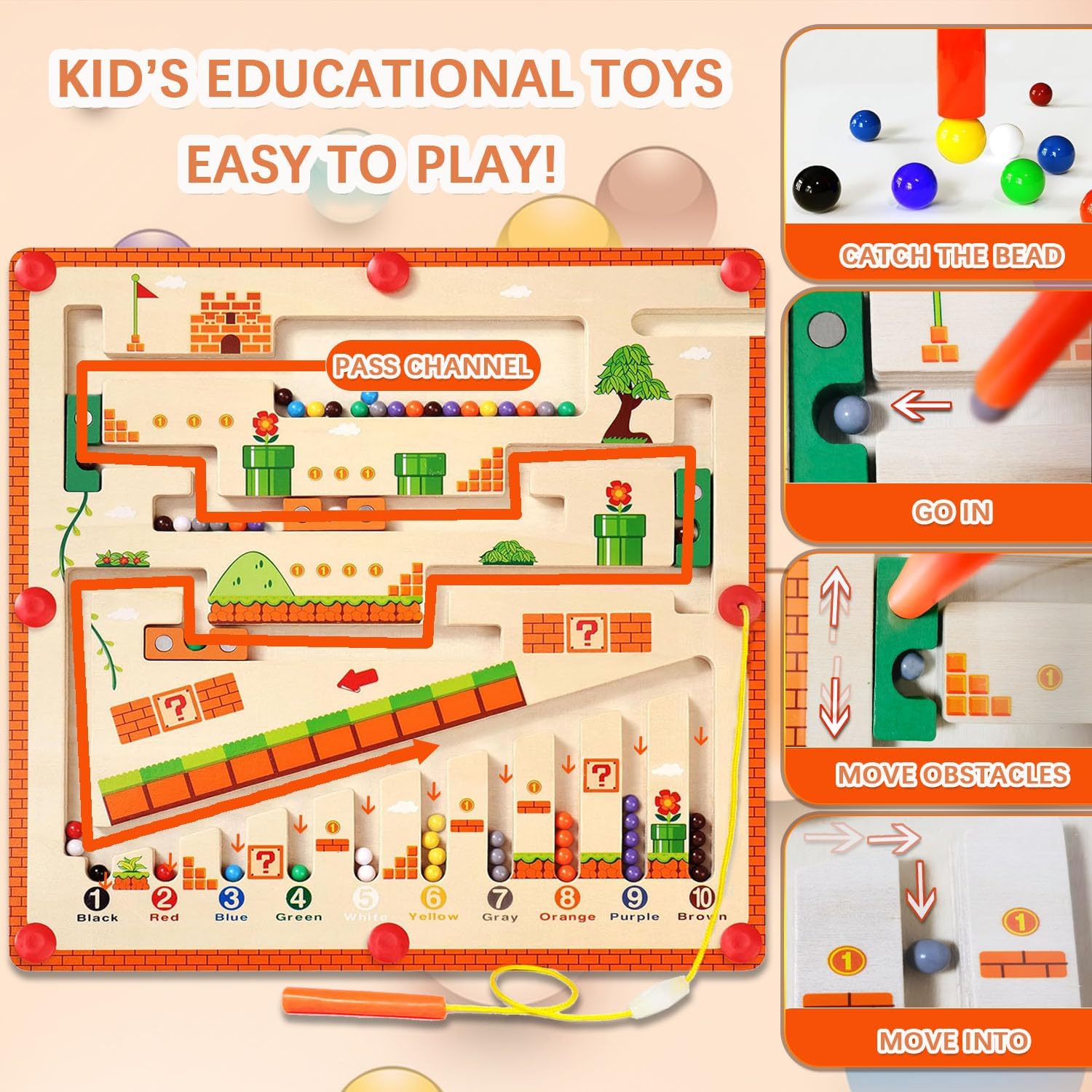 Very Engaging Maze Play! –A very fun magnetic learning game made of wood. Teaches numbers, counting, colors with a fun maze, to promote fine motor skills, and hand-eye coordination. Improve your mind and patience, relieve your stress, and promote inspiration educational toys.