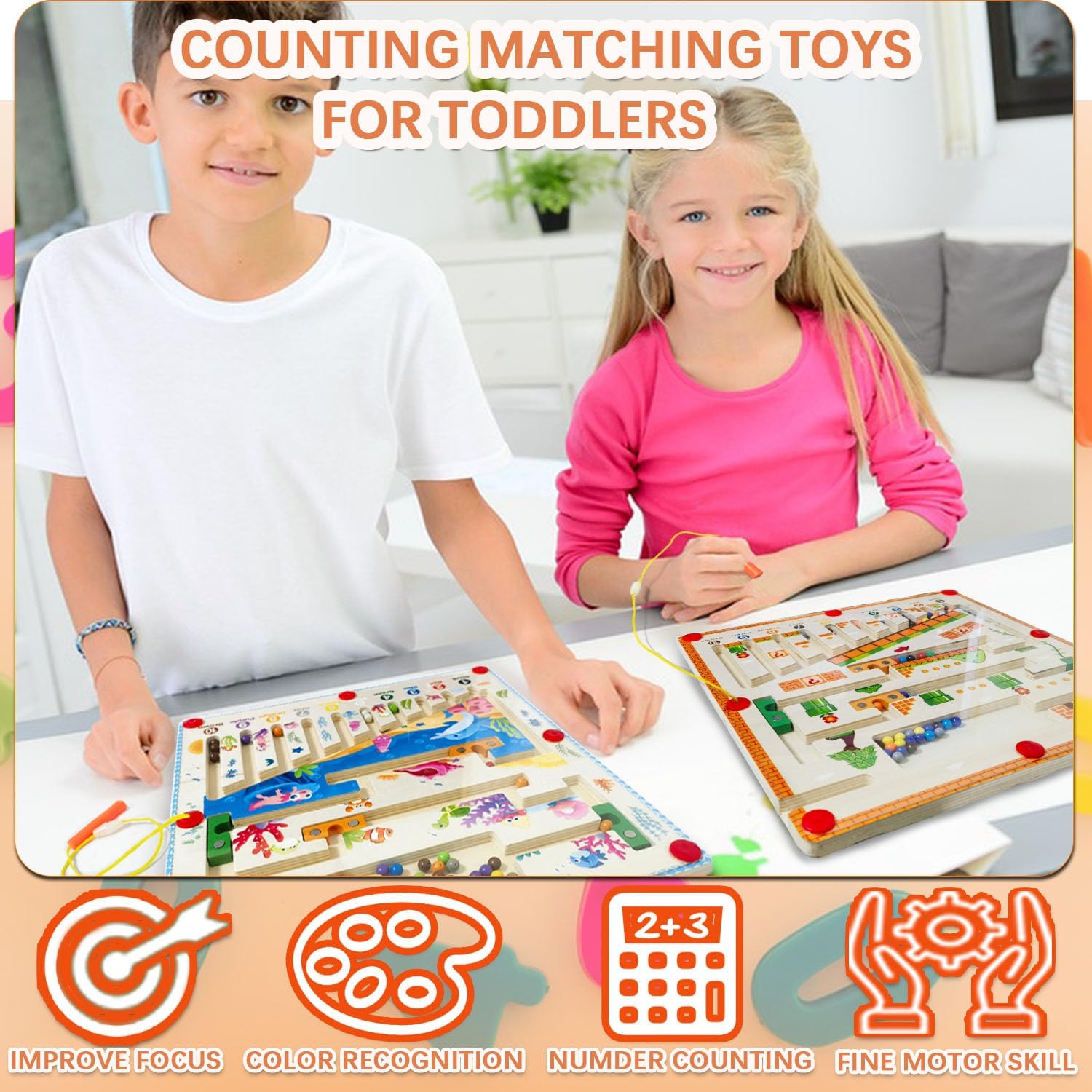 Easy To Play! –This magnetic maze puzzle board toys comes in 10 different colors and numbers, Kids needs to use magnetic rods to attract magnetic balls of corresponding color and quantity via the obstacles to the correct position to complete the color and number matching game.