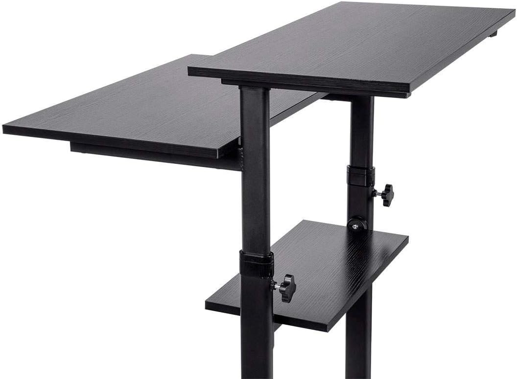 This adjustable sit‑stand workstation cart provides ample workspace for a PC or laptop, a monitor, and a keyboard. Adjustable from 32″ to 49″ of height, you can easily use it as a sitting desk or a standing desk. Sturdy high‑strength steel construction and locking wheel casters make this workstation a versatile choice for home, office, or classroom use.