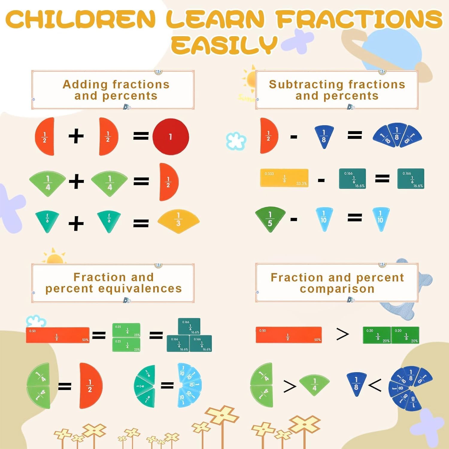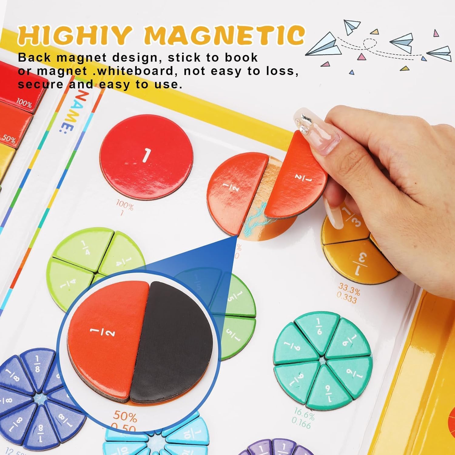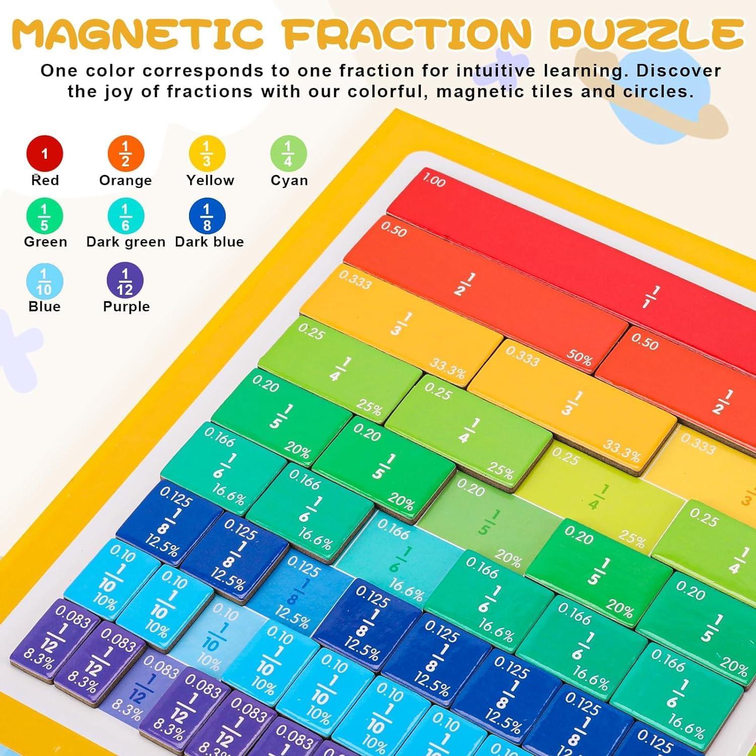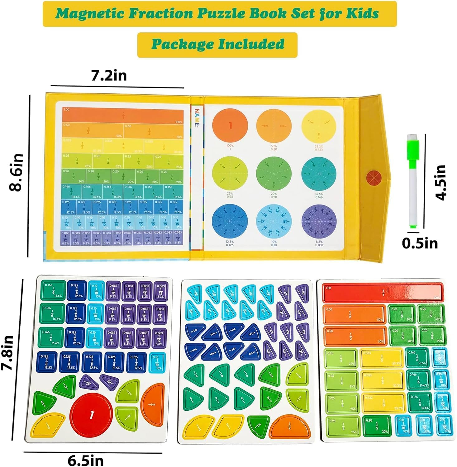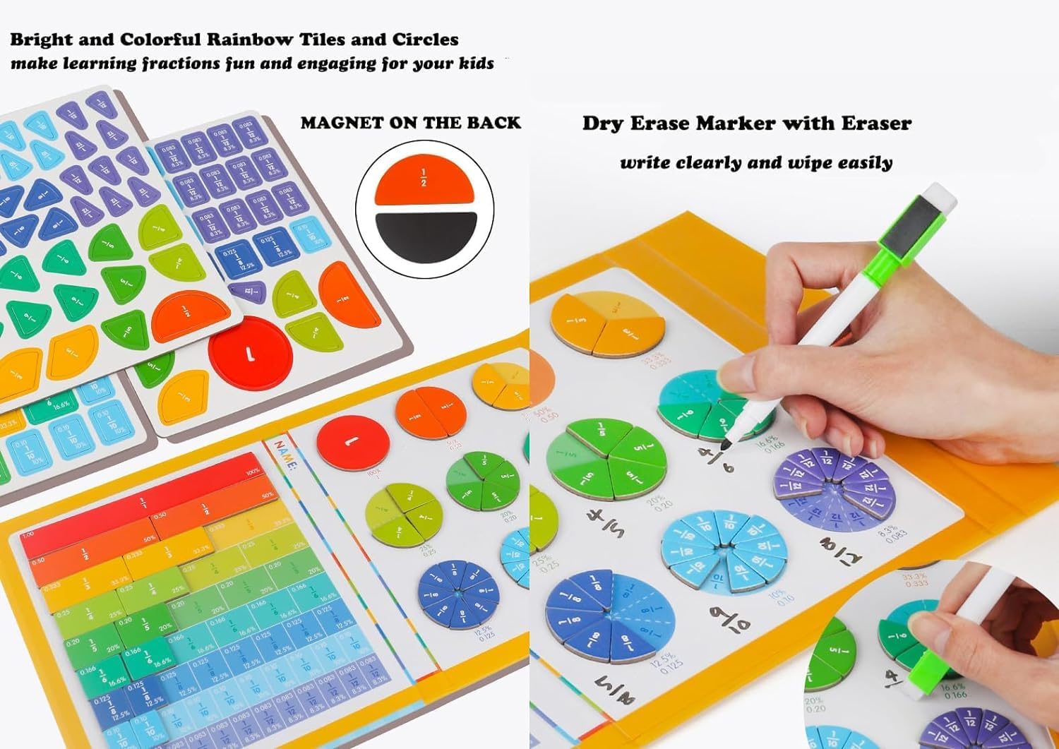 4. Easy and Enjoyable for Homeschooling: The magnetic fraction puzzle is an interactive and playful supplement that enhances the homeschool experience, making learning fractions enjoyable and stress-free.