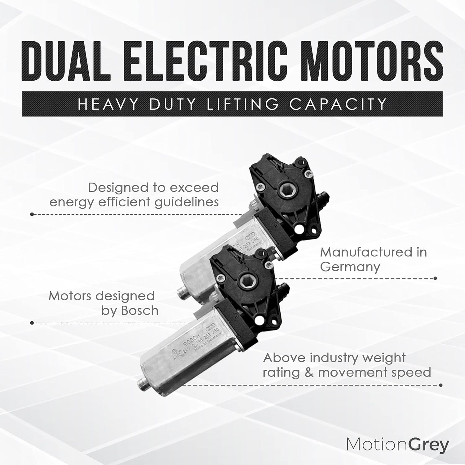 ✅ German Made Bosch Dual Motors – Our dual Bosch premium motors feature above industry weight rating, movement speed and are designed to exceed energy efficient guidelines. For the best quality, each motor undergoes our 6-step full inspection procedure.