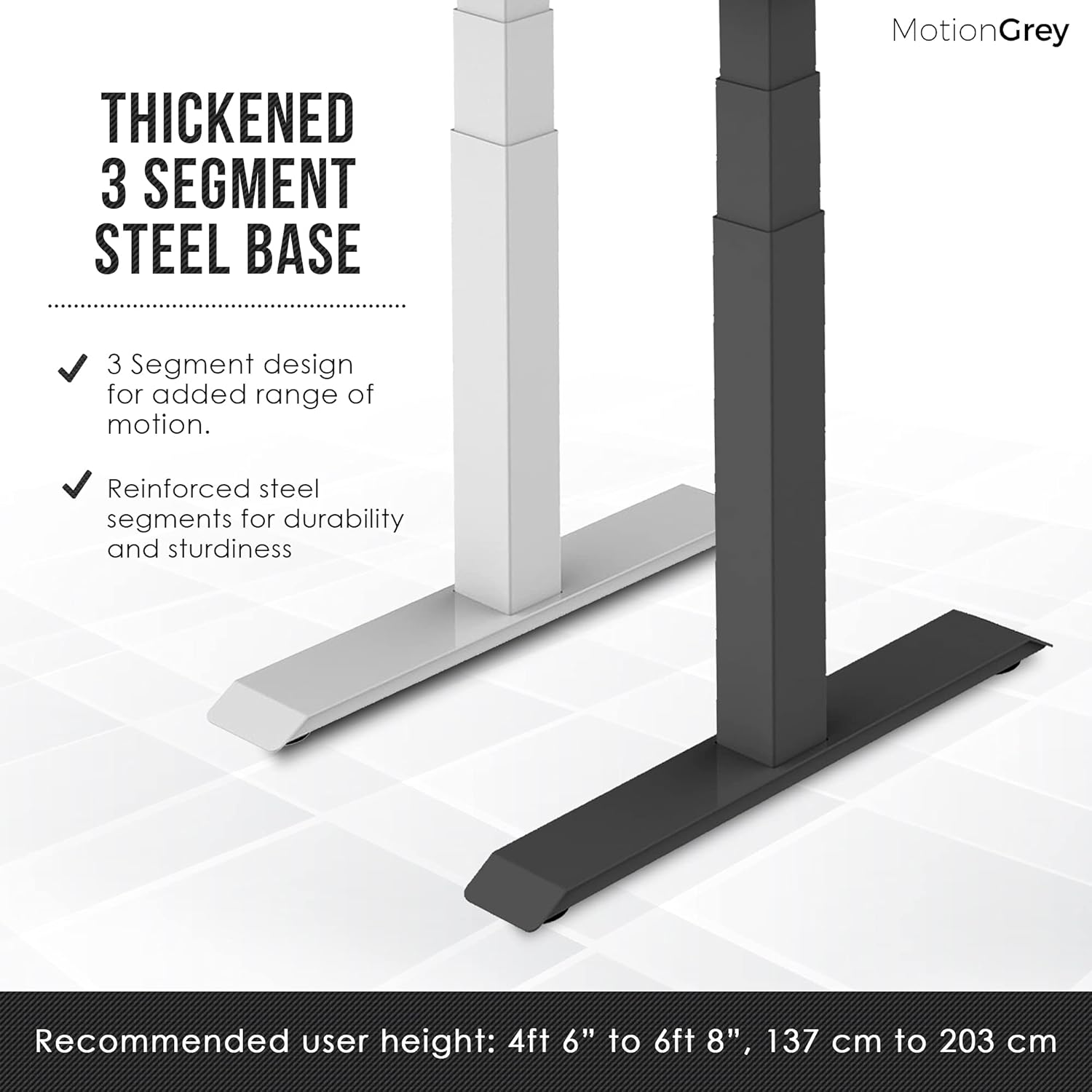 Allow faster ascending and descending elevation from your Motion deskMore power output and reliability when compared to a single motored deskQuiet motion during movement due to evenly power distribution from dual motorsThis is what allows MotionGrey to offer a three-stage segment desk frame