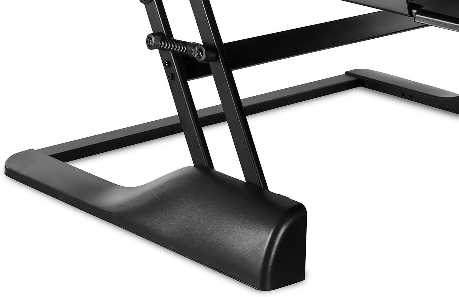 Found the construction to be sturdy and the motion to be fairly smooth, until I added my monitors, that is. Once I put two 23 inch monitors on the desk, I could not lift it. I am short (5’0′), and just could not get enough leverage to make it rise once the weight of the monitors was added. If I didn’t want to transition back and forth from sitting to standing, I would have kept it, but since the whole purpose was versatility, I had to return it. Also worth noting, I purchased a clamp on fully articulating dual monitor mount and when I put it on the desk, the screws on the clamp would not let the desk collapse all the way down. That was not the deal breaker though – since I opted for a different add on (I wanted the fully articulating feature, not fixed arms), but it was disappointing. I was just really surprised at how hard it was to lift once monitors were on and that no one else had mentioned it in the many different reviews I read. Still trying to find an alternative that will work for me.