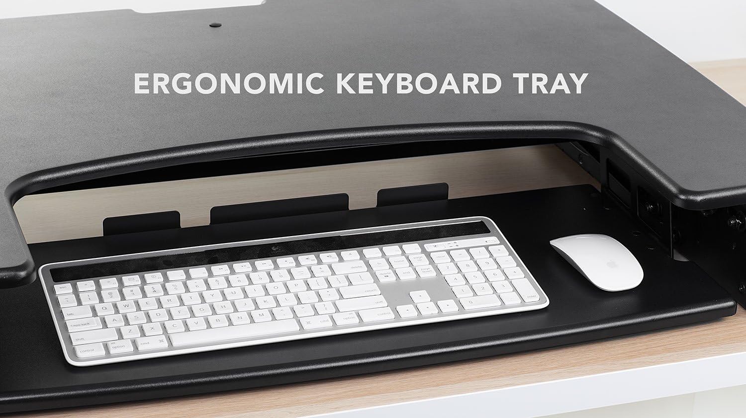 ERGONOMIC KEYBOARD TRAY The strategically placed keyboard tray promotes a healthier posture while working, whether sitting or standing, enabling your body to stay in alignment throughout your workday.