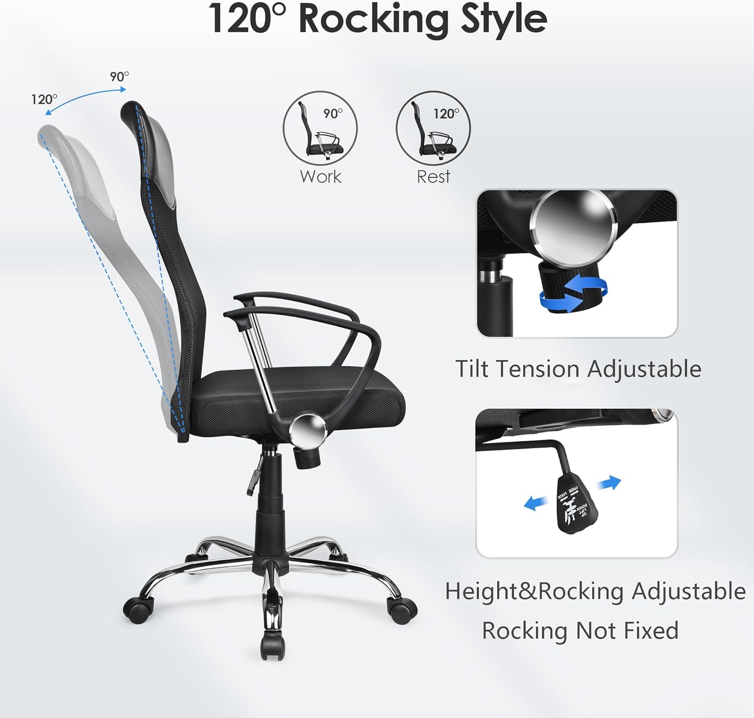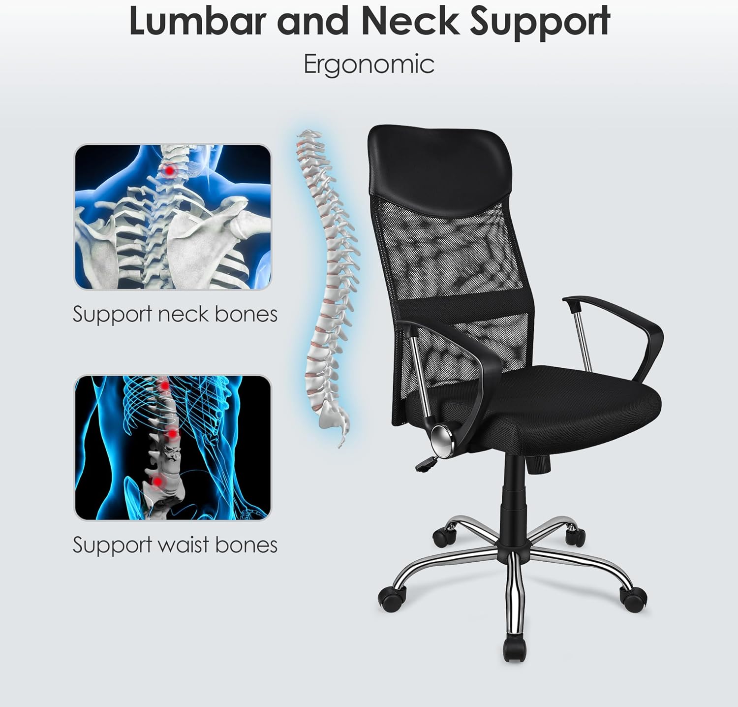 Superior Comfort: This ergonomic office chair features a high-back mesh design that conforms to your body’s natural curve, providing exceptional support for lumbar and neck and comfort during long work sessions.