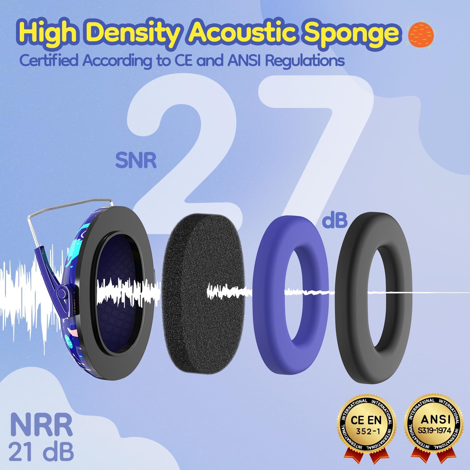 【Professionally Certified 】Our noise-canceling earmuffs are meticulously designed to provide optimal safety. With an impressive SNR of 27 dB, they excel at reducing noise and shielding your child’s hearing. Plus, these earmuffs are certified and fully compliant with the stringent ANSI S3.19-1974 and CE EN 352-1 standards for noise reduction.