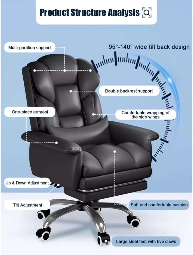 ✔【Stylish & Versatile DesignThe our Office Chair features adjustable height, 360° swivel and 95°-140° tilt angle. Desk chair With a powerful control lever, you can easily adjust the seat height and keep the backrest upright, The knob under the seat allows for perfect tilt tension control.