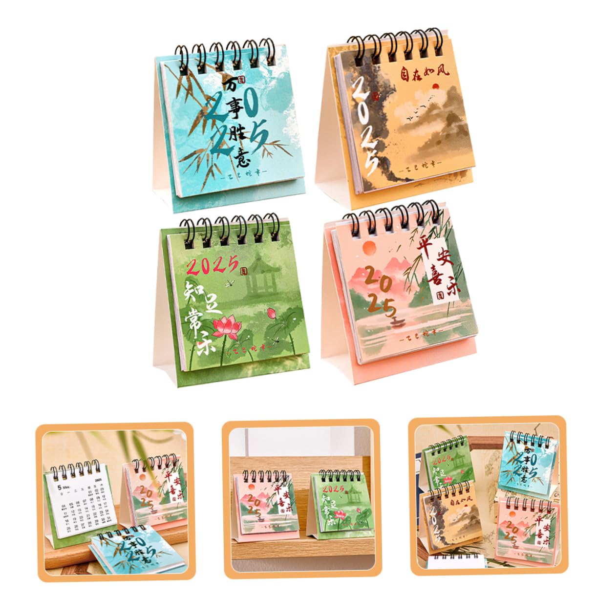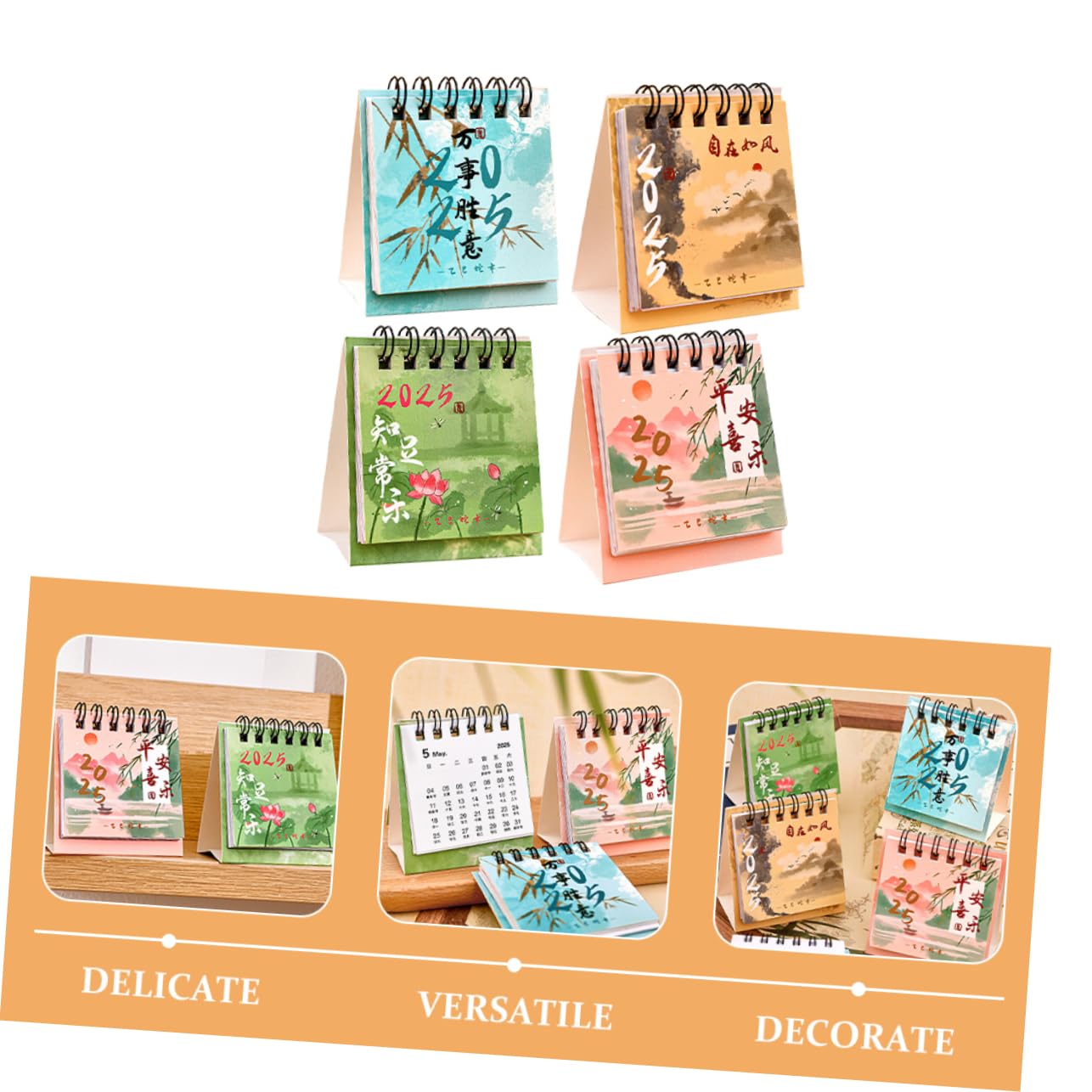 ORFOFE 4pcs Mini Desk Calendar Chinese Art Elegant Calendar Desk Planner 2025 Monthly Desk Calendar Office Calendar Stand up Desk Calendar