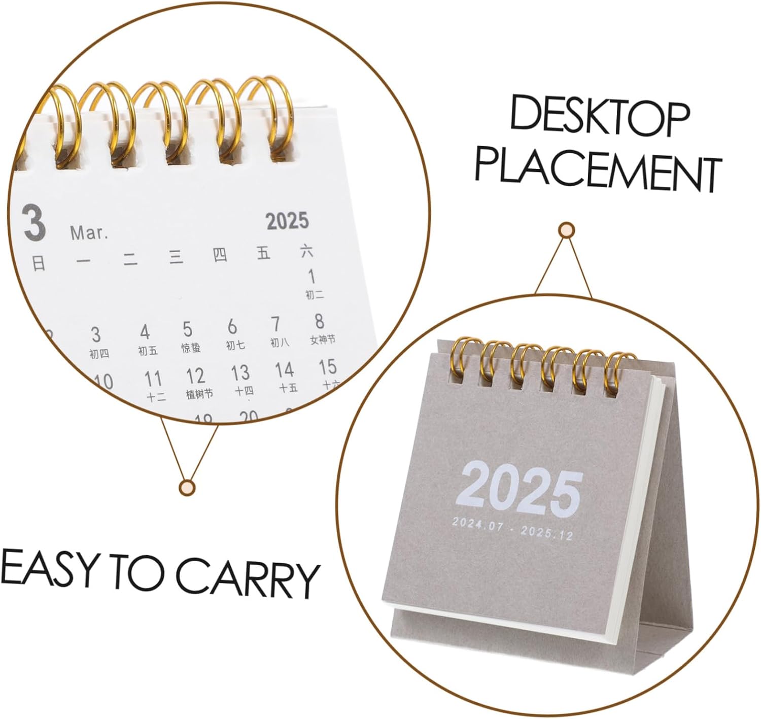 2025 Desk Calendar Mini Standing Calendar Desk Calendar 2024-2025 Small Desktop Calendar Paper Grey