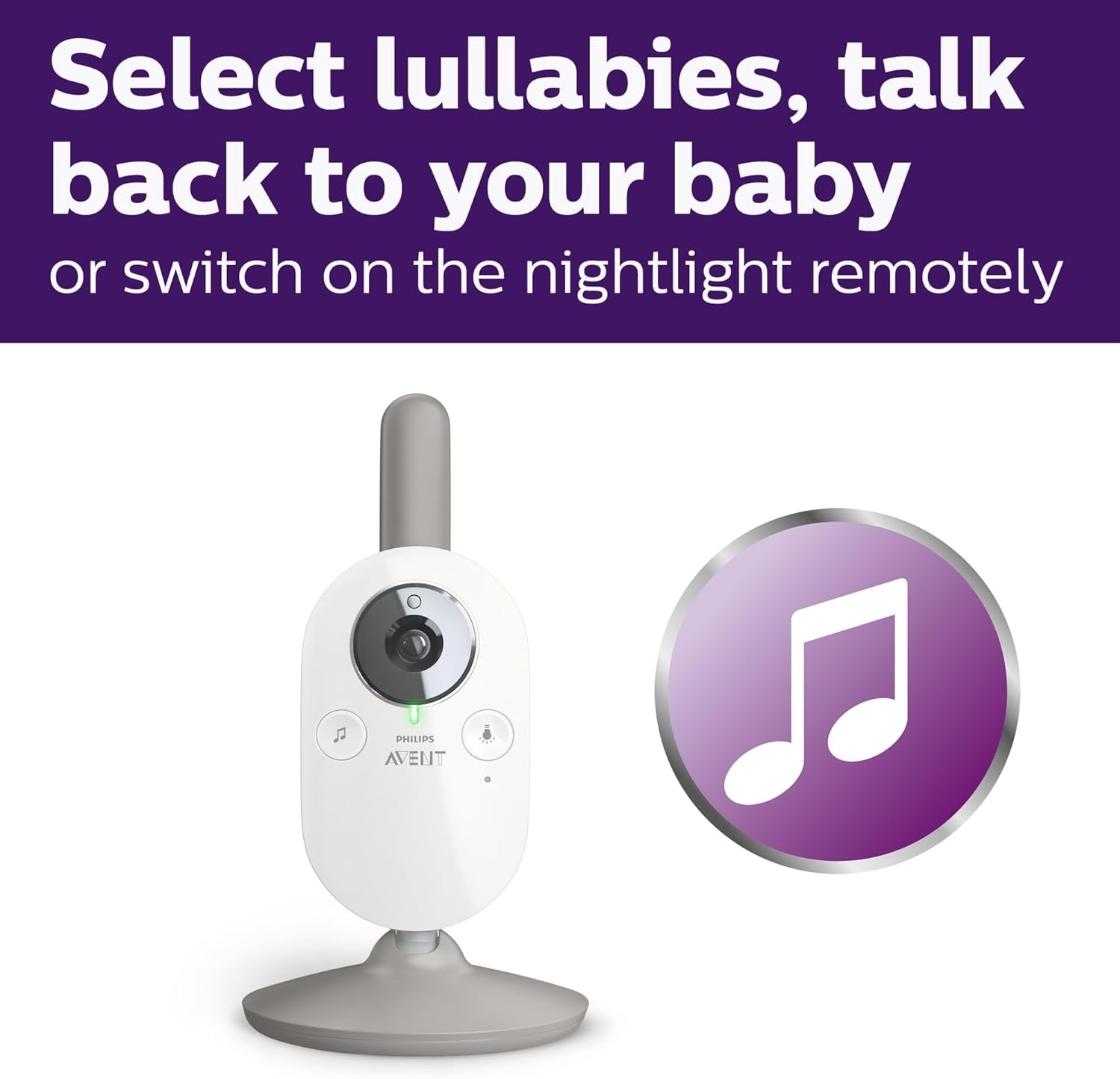 Cons:1- Very narrow lens. If you want to see the whole crib you need to instal it on the ceiling. If you leave it standing on some furniture around the crib you will probably see half of your baby (if he/she doesn’t move at all).2- Image out of focus. It could be a problem just on my device but the image was a bit blurred. The the screen is not great, so don’t expect image quality.3- There is a strong green led light in front of the camera and a red light around the lens. It is very strong! The room supposed to be dark but the designer of this product decided that it was a good idea to put a “flashlight” pointing to a baby’s face all night long.4- The temperature alarm is LOUD. I mean, it’s really really loud. If this thing goes on in the the middle of the night you will think the house is on fire! And doesn’t matter if you have it on the lowest volume.5. I accidentally hit a music button and a stupid lullaby started to play super loud on the camera. My baby woke up crying extremely scared. At that moment I thought about to smash this terrible product with a sledgehammer.6- It’s very expensive for what it is. I am packing it up and returning it for a refund. Philips is a brand that I know from the past and I used to like it. This single product changed my opinion about everything they make, specially anything for babies and kids. Philips in my house never again!Pros: the monitor has good looking design (the camera not so much). That’s all.