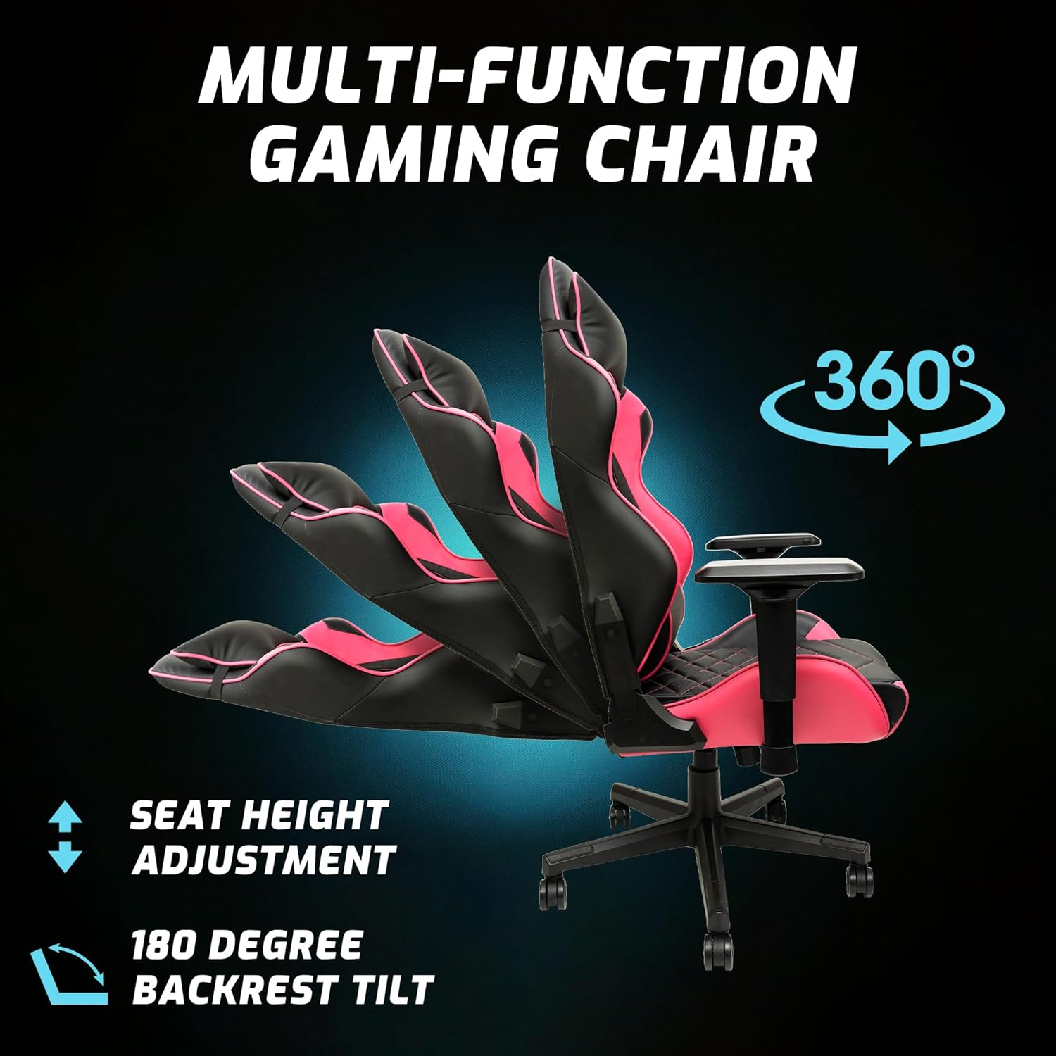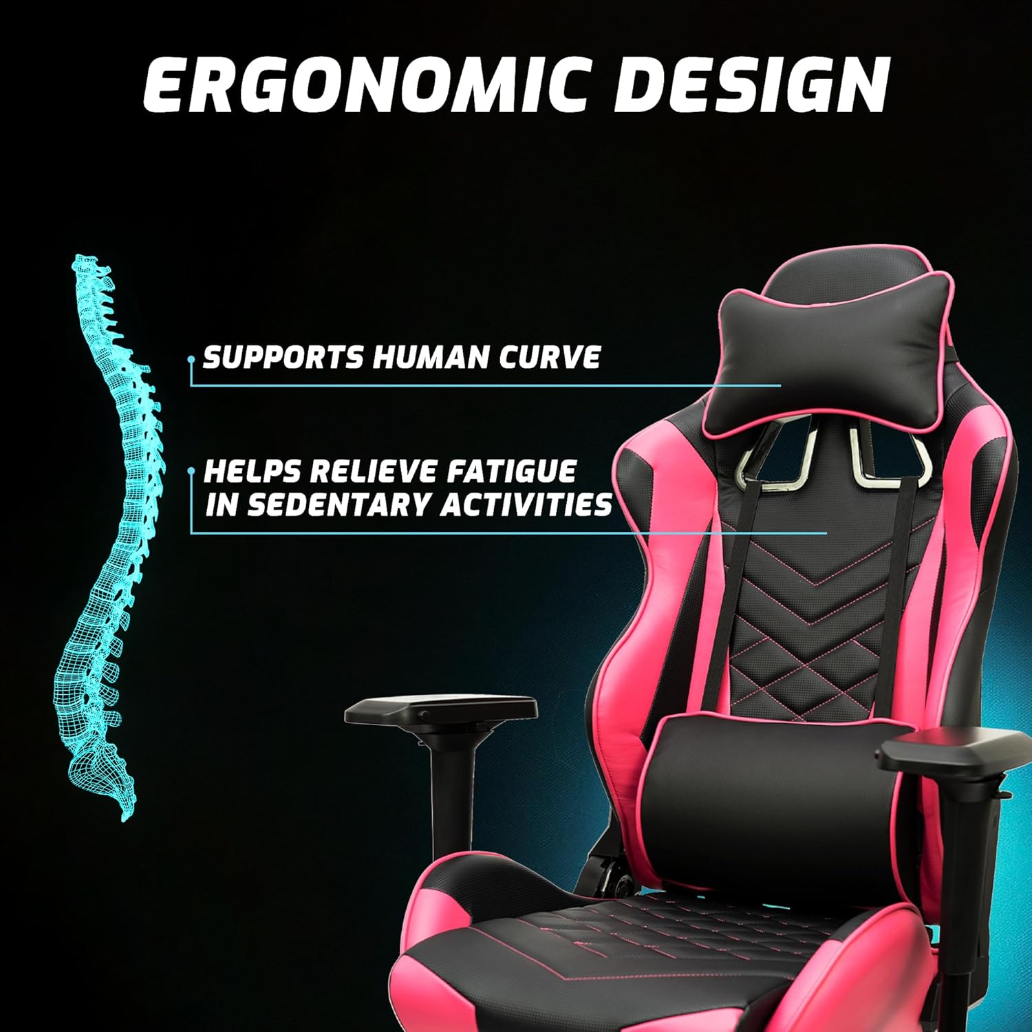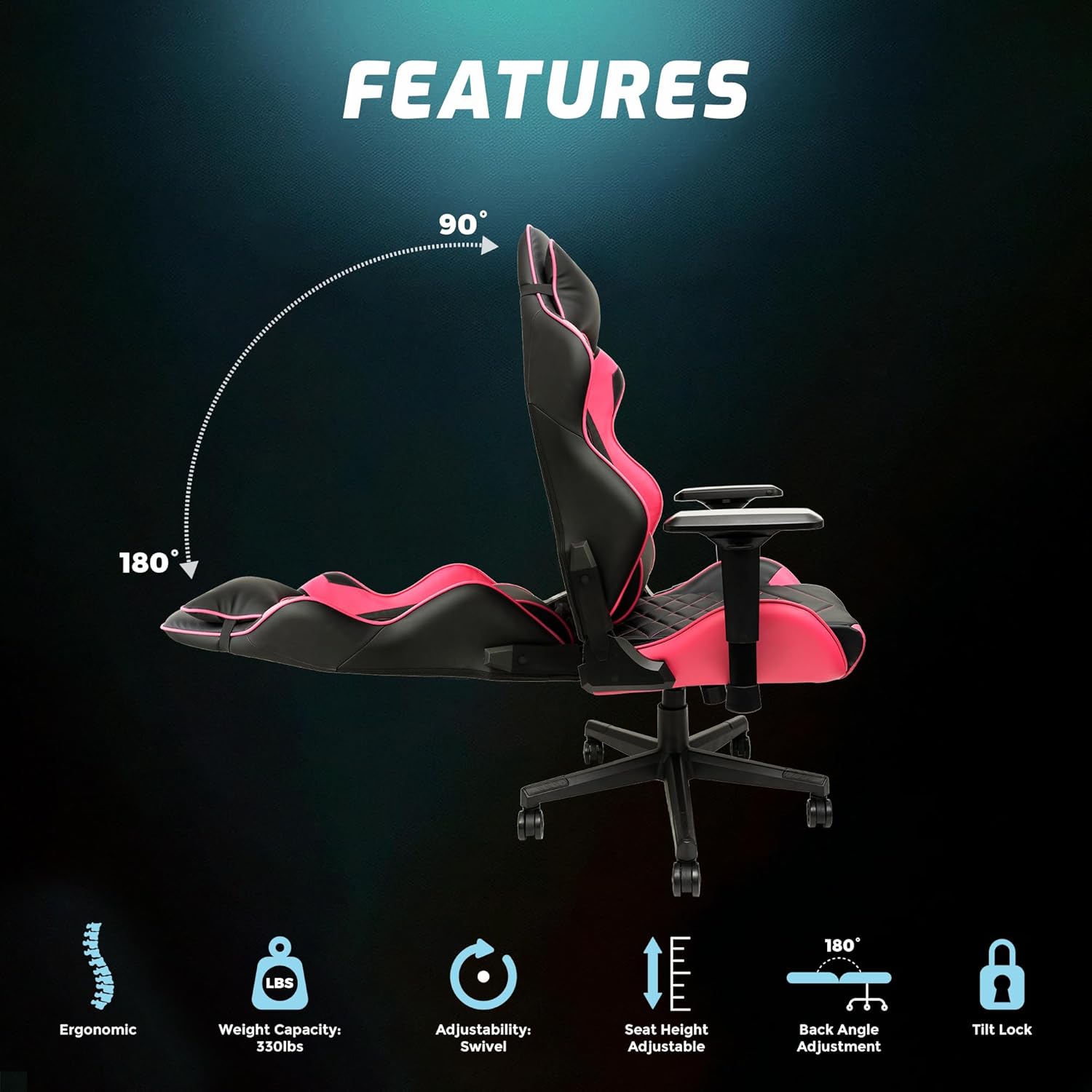 Just an absolutely amazing chair! First off, this thing can adjust more ways than I can begin to count, it allows for the ultimate customization. The pink and black color combination looks stunning and bold. Super easy to clean and most importantly, it’s extremely comfortable. Can’t go wrong with the arms (which also adjust so many ways), or the recline feature. Just an overall amazing chair!