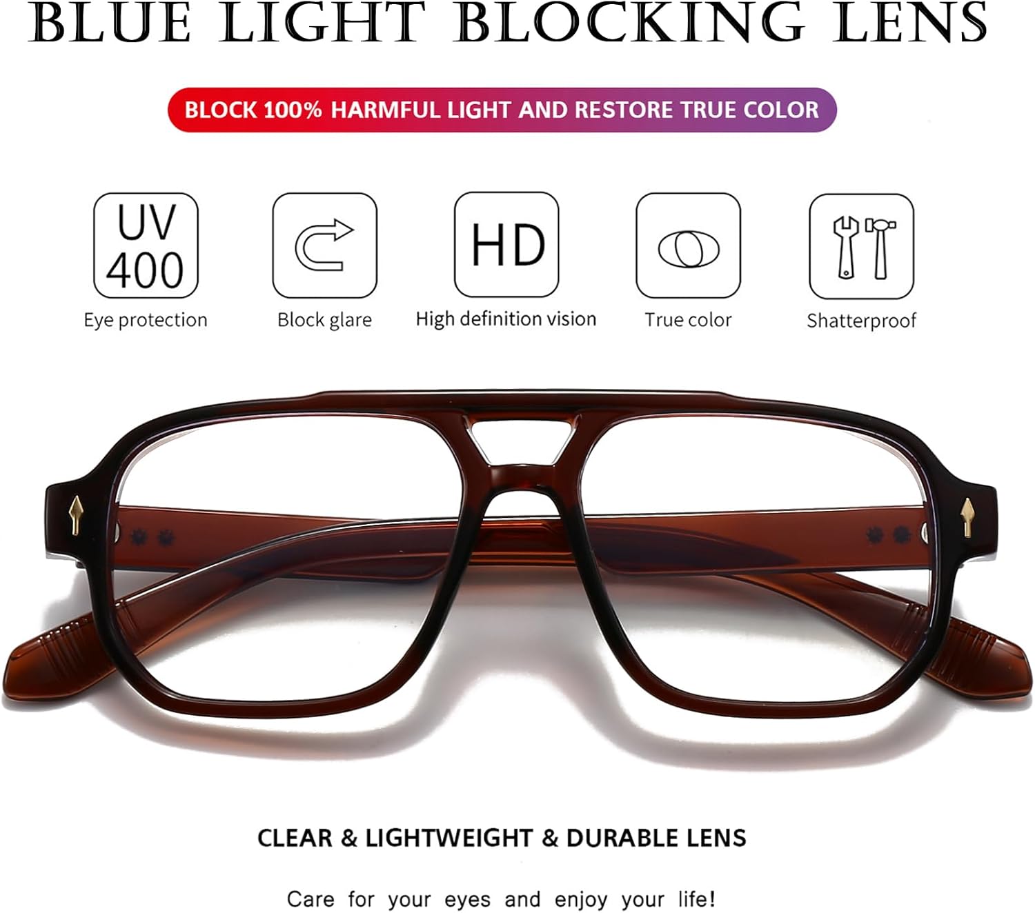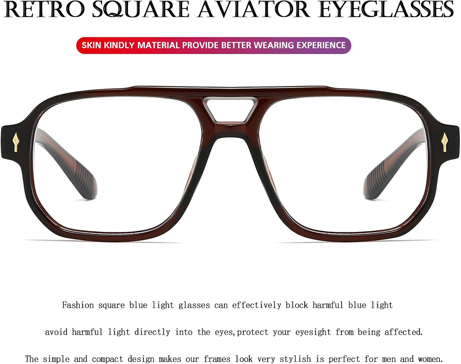 PORADAY Blue Light Blocking Glasses for Women Men 70s Retro Square Aviator Eyeglasses Rectangle Computer Eyewear