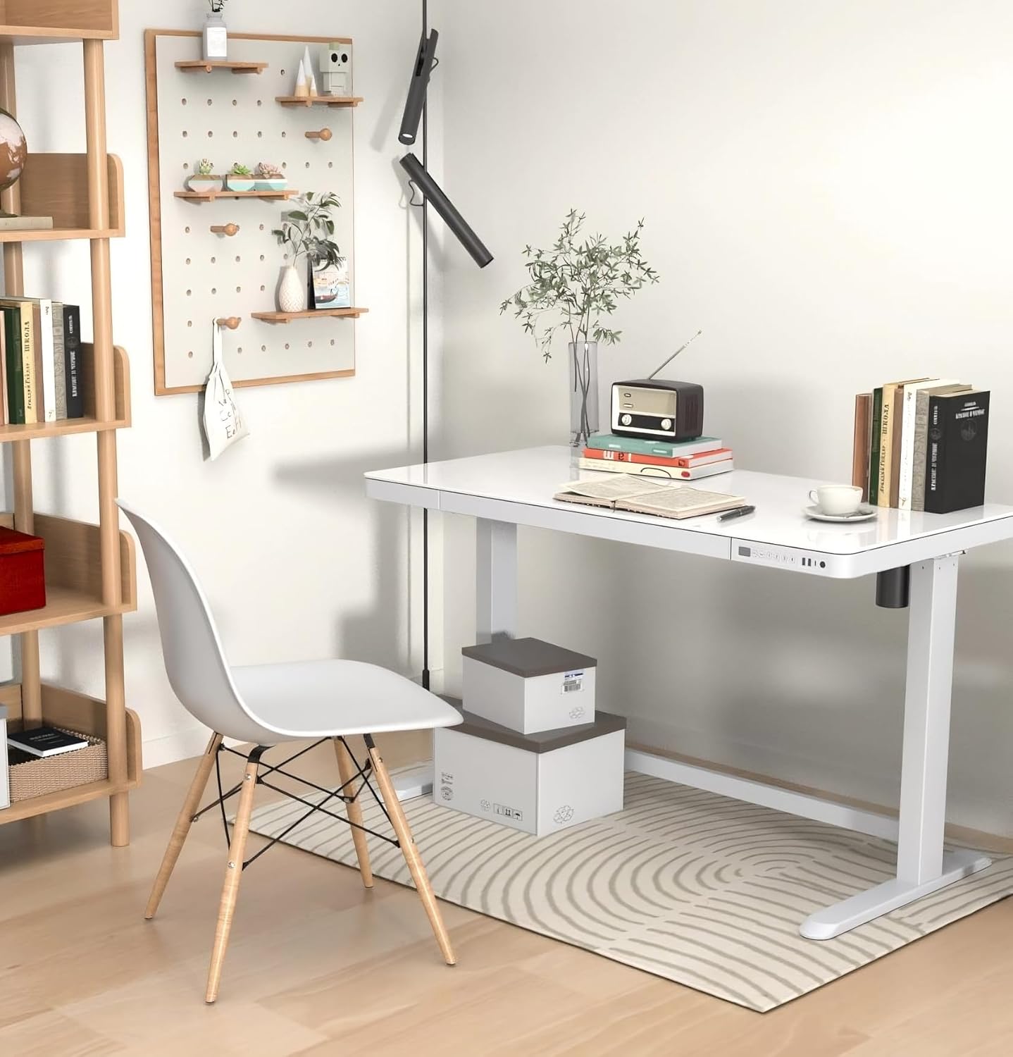 Customers appreciate the desk’s sturdy build, easy assembly, and nice appearance. They find it simple to operate and program the buttons. Many consider it a great desk with a nice glass top and white classy color. While most are satisfied with its value for money and height adjustment, some have mixed opinions about the motor functionality and noise level.