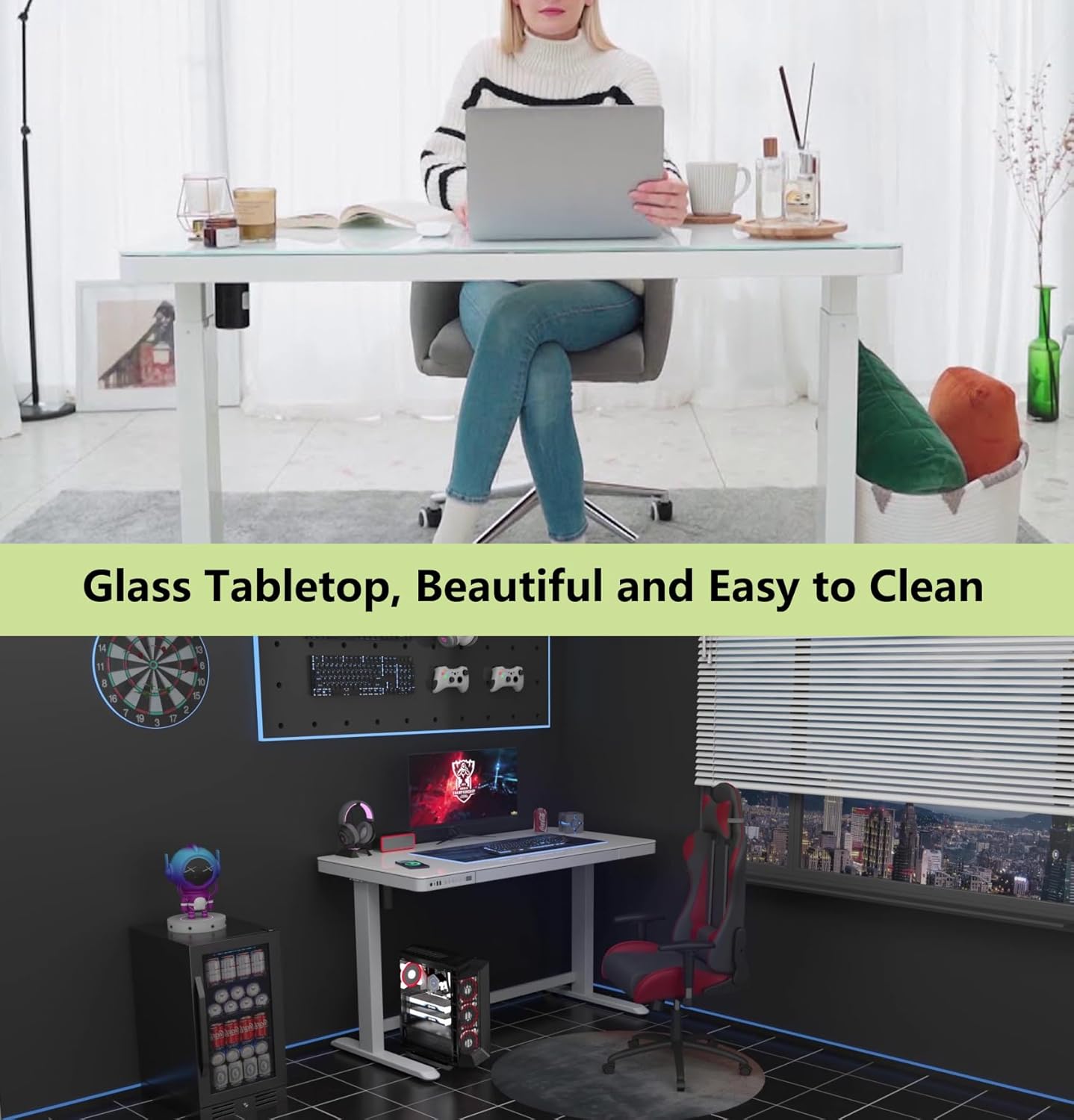 【White Color with Glass tabletop】All-in-One Sit-Stand Height Adjustable Desk with Glass tabletop and need a pad to use the mouse, Whether you’re working at home or just for family use, there’s plenty of room for your setup. A wise choice for the whole family!