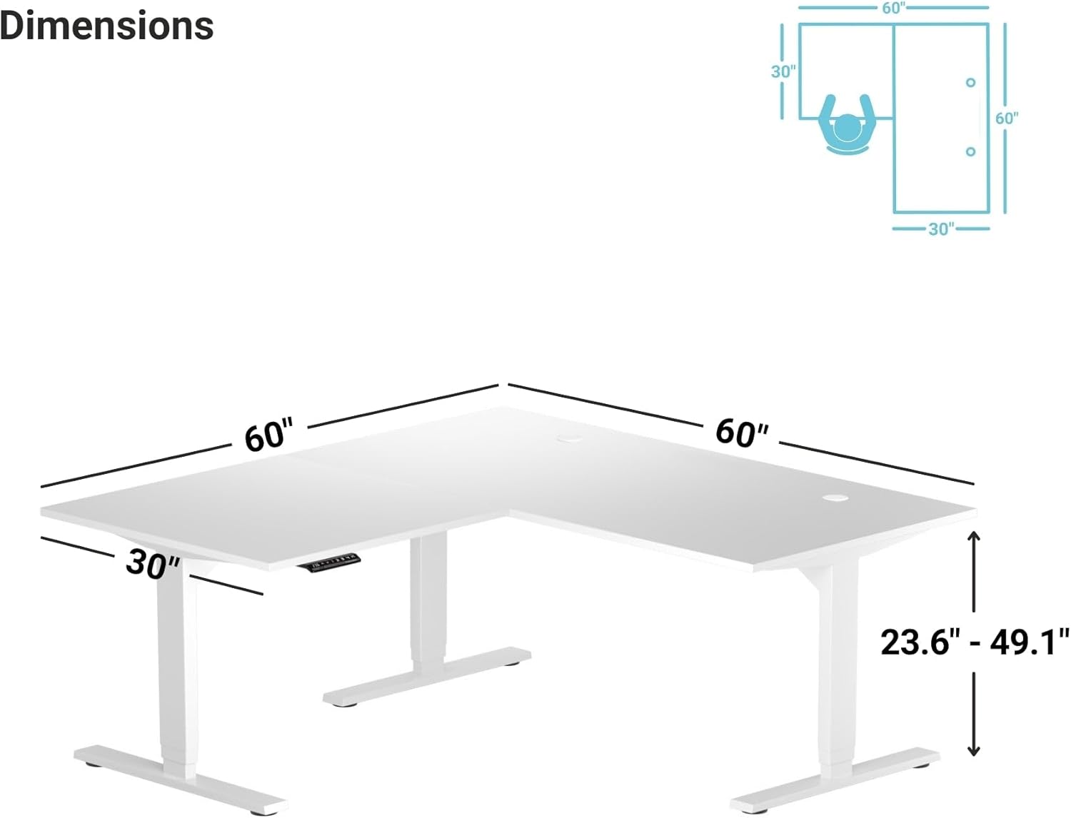 ELECTRIC HEIGHT ADJUSTABLE CORNER DESK: Accommodate all your office essentials with the expansive furniture and work surface of our 60″ x 60″ Corner Ryzer L shaped rising desk; Whether it’s multiple monitors, a printer, or supplies, this adjustable modern computer standing desk offers ample room to keep everything within reach; This L shaped corner gaming desk is perfect for creating a dedicated gaming or work station in any room; Maximize your productivity with ease