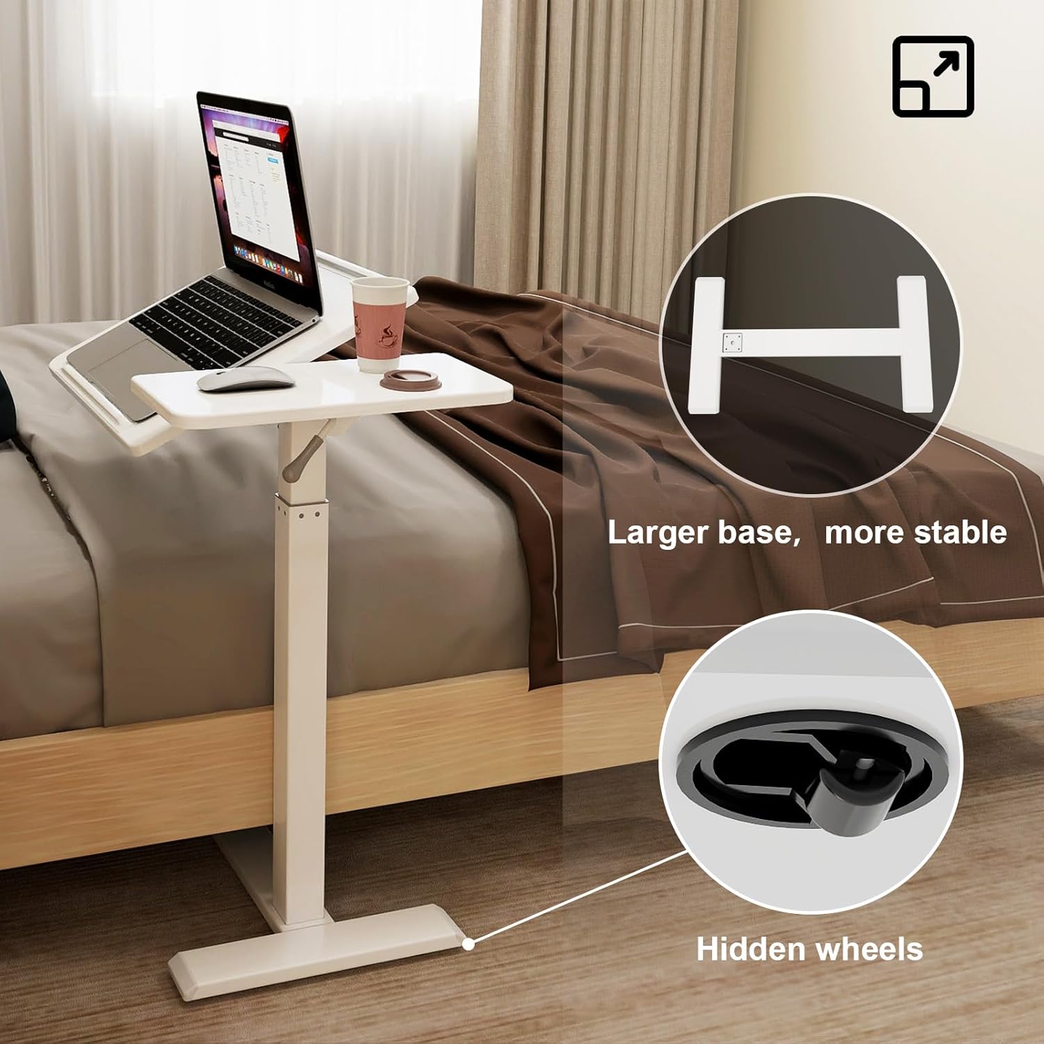 【DURABLE SMOOTH MOVING】:H-shaped base provides stability,equipped with hidden rolling wheels,which can be easily slid into the bottom of the bed. The most comfortable posture for eating, working, and reading in bed.