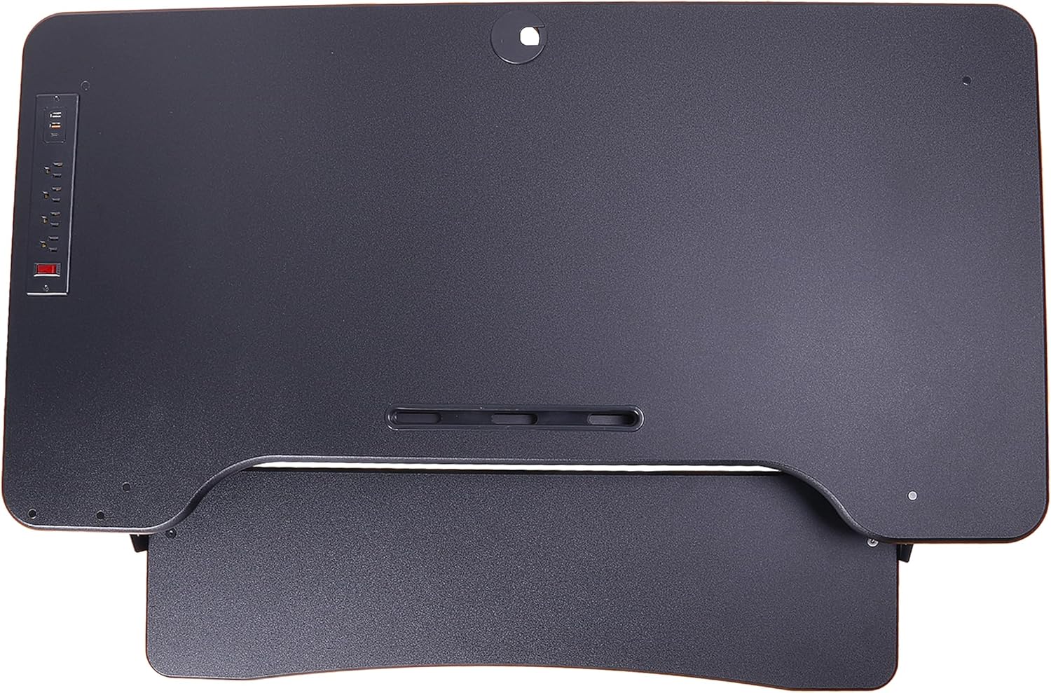 Rocelco 46″ Electric Standing Desk Converter with AC Outlet USB Charger – Motorized Height Adjustable Sit Stand Up Triple Monitor Riser – Tabletop Workstation Large Keyboard Tray – Black (R EDRB-46)