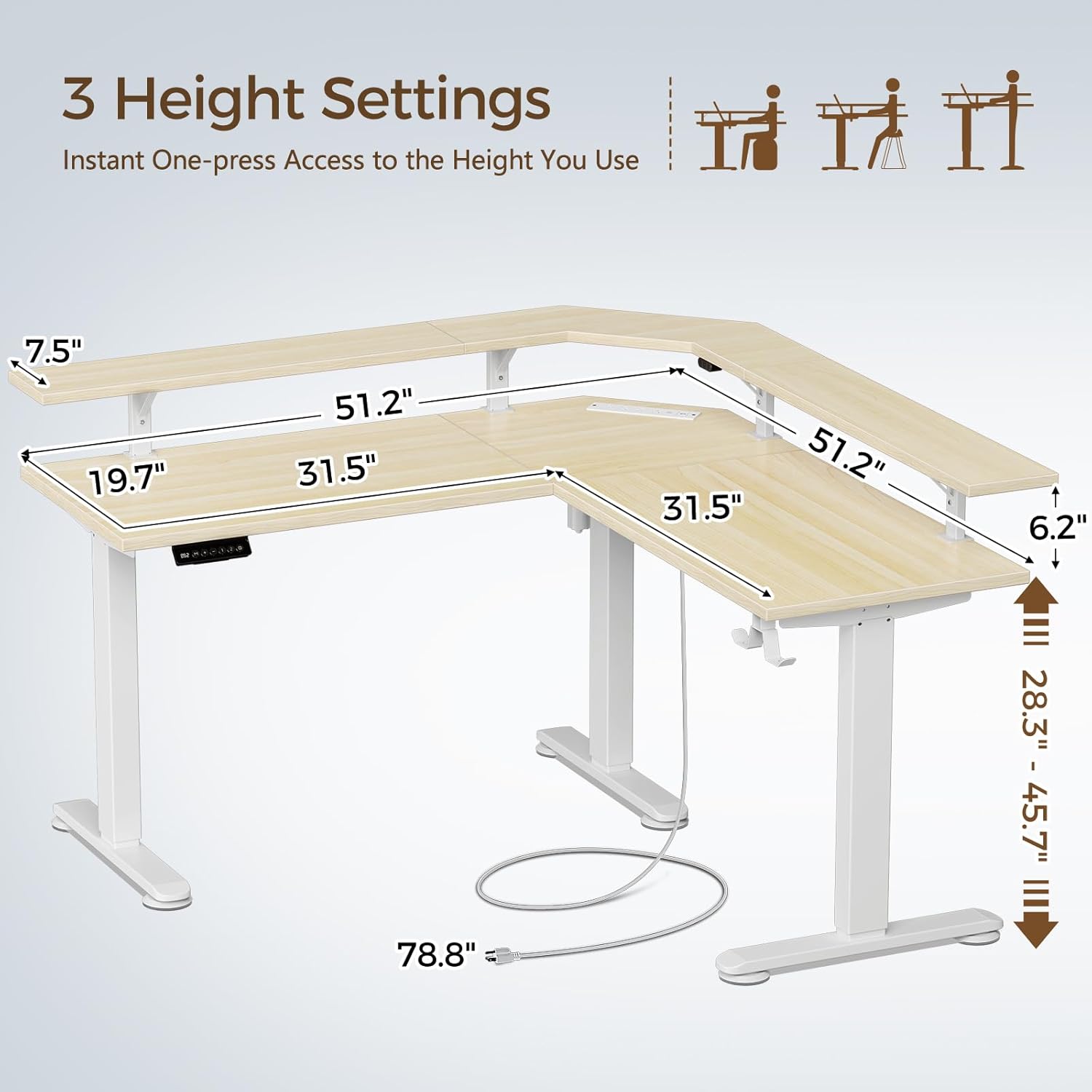 2 Memory Presets with LED Control Panel: Customize your ergonomic setup with the two preset buttons on the LED control panel, allowing for easy adjustment to preferred heights. Additionally, the desk features a timing function, enabling users to set reminders to avoid prolonged sitting