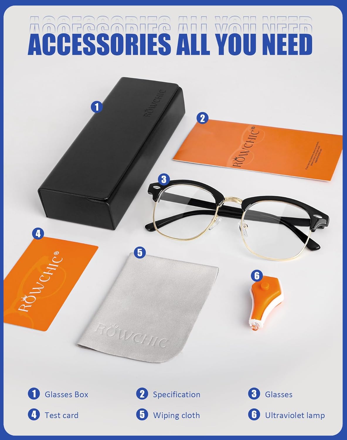 Uninterrupted Sleep: Put an end to sleepless nights with ROWCHIC blue light blocking glasses. Crafted with care, our glasses effectively block out the harmful blue light that interferes with melatonin production, ensuring an uninterrupted and refreshing sleep. Wake up feeling energized and ready to take on the day commitment to improving your sleep quality.