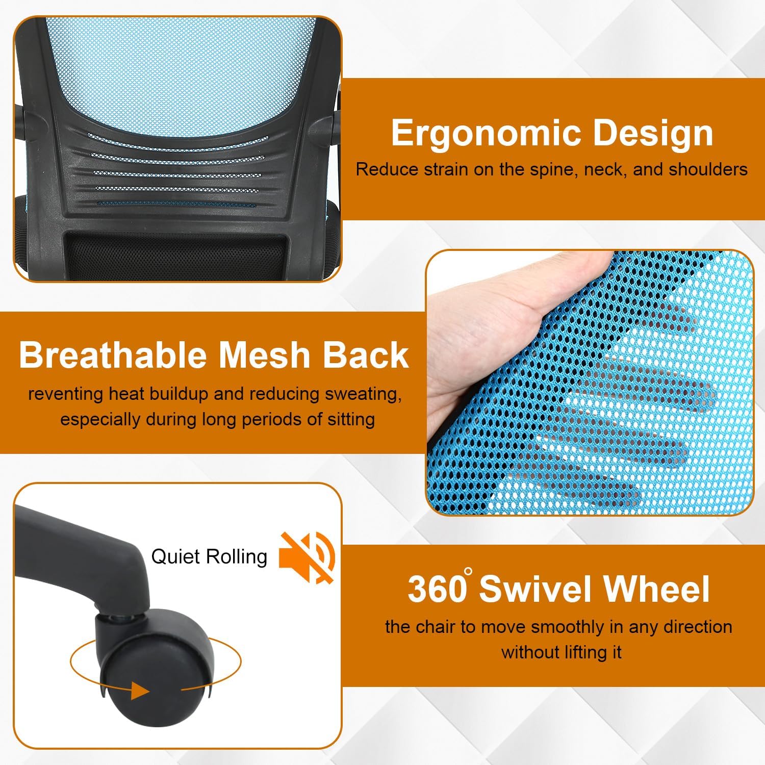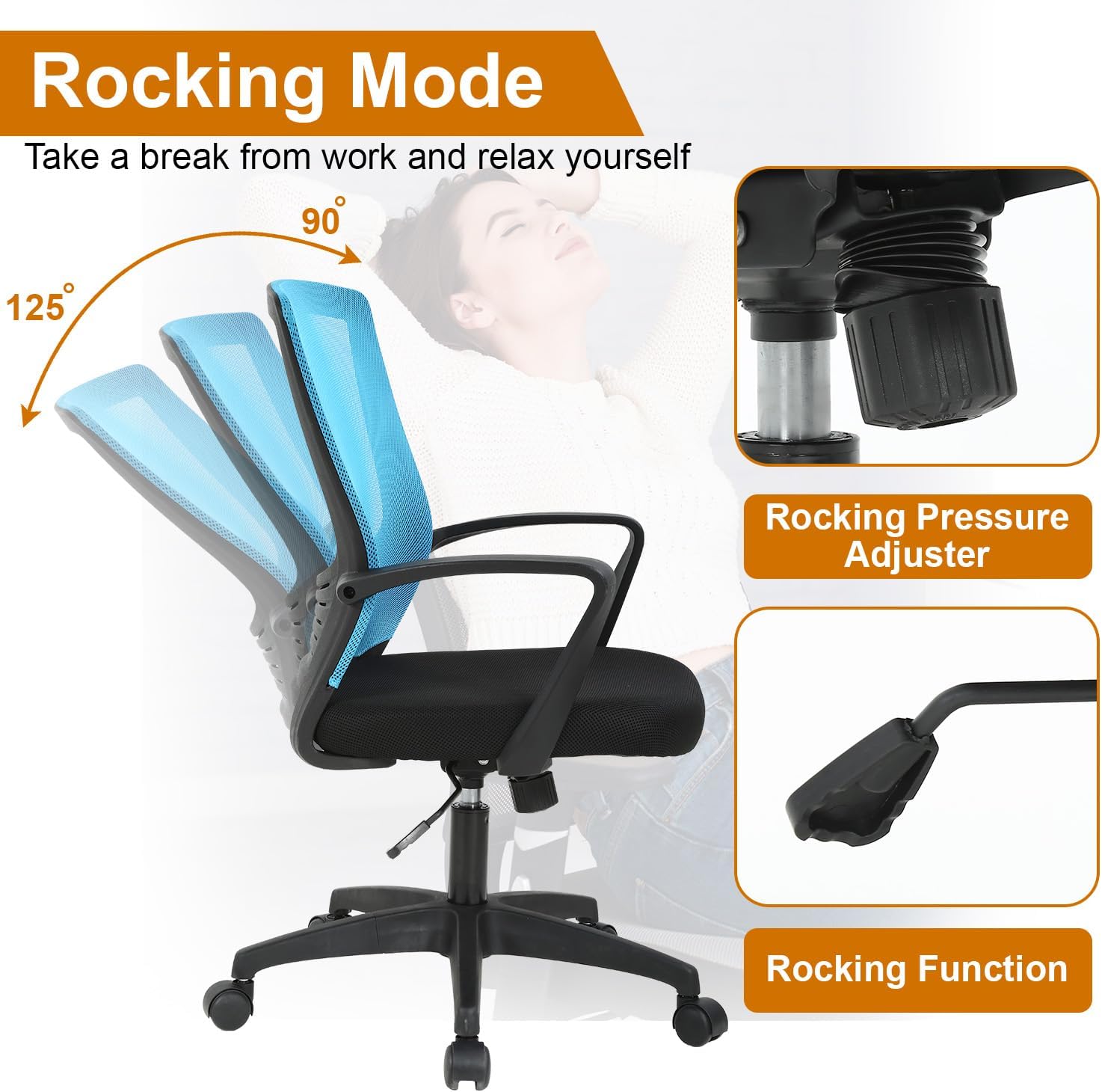 Breathable Mesh Back: Our desk chair is equipped with a highly ventilated mesh back, which promotes airflow while you sit, keeping you cool and comfortable throughout the day. This mesh chair is ideal for those who spend extended periods at their computer.The tilt adjustment feature provides added relaxation after work, making it a versatile choice for any desk setup