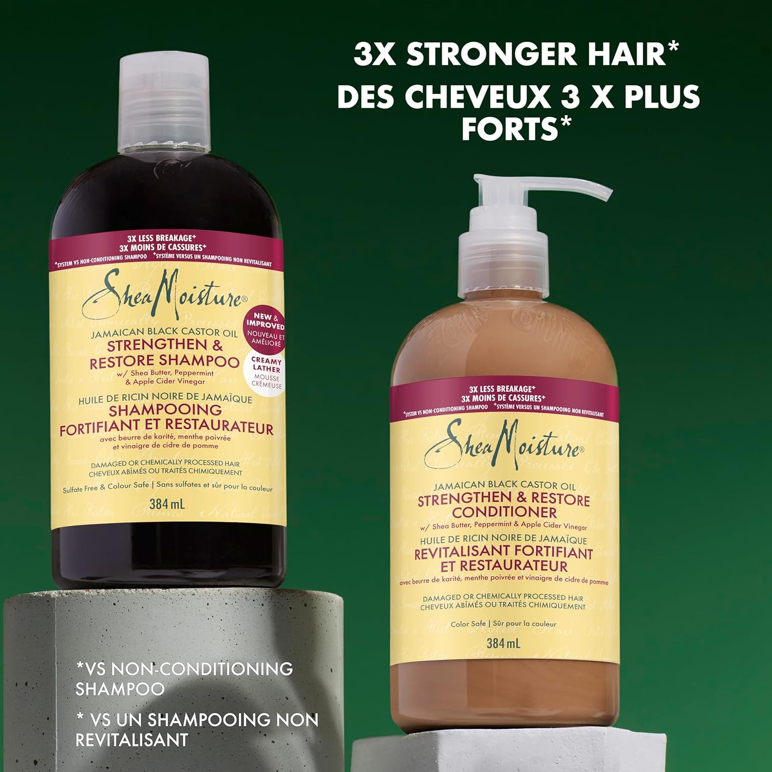 A Shea Moisture strengthening conditioner that detangles and restores moisture without weighing hair down. Perfect for those who regularly colour, straighten or perm their hair as well as kinky, curly and wavy natural styles. This conditioner, formulated with Jamaican Black Castor Oil and Shea Butter, nourishes and strengthens brittle, damaged hair, reducing the appearance of breakage and shedding. Peppermint Oil helps stimulate the scalp for an invigorating tingling experience. This hair conditioner leaves hair shiny and fully rejuvenated. Like all of our hair care products, this conditioner contains no silicone, sulfates, parabens, mineral oil or petrolatum. SheaMoisture Jamaican Black Castor Oil Conditioner is also phthalate-free. How to Use: After shampooing with Jamaican Black Castor Oil Strengthen & Restore Shampoo, apply generously and comb through for even distribution. Leave in for 3 minutes. Rinse. Style as desired. SheaMoisture’s Story: SheaMoisture is the legacy of Sofi Tucker, a pioneering mother of four and an entrepreneur, who sold Shea Butter, African Black Soap and homemade beauty preparations in Sierra Leone in 1912. We honour her vision by continuing to formulate with Raw Shea Butter handcrafted by women in Africa. With every purchase, you show support of our mission to reinvest back in our communities.