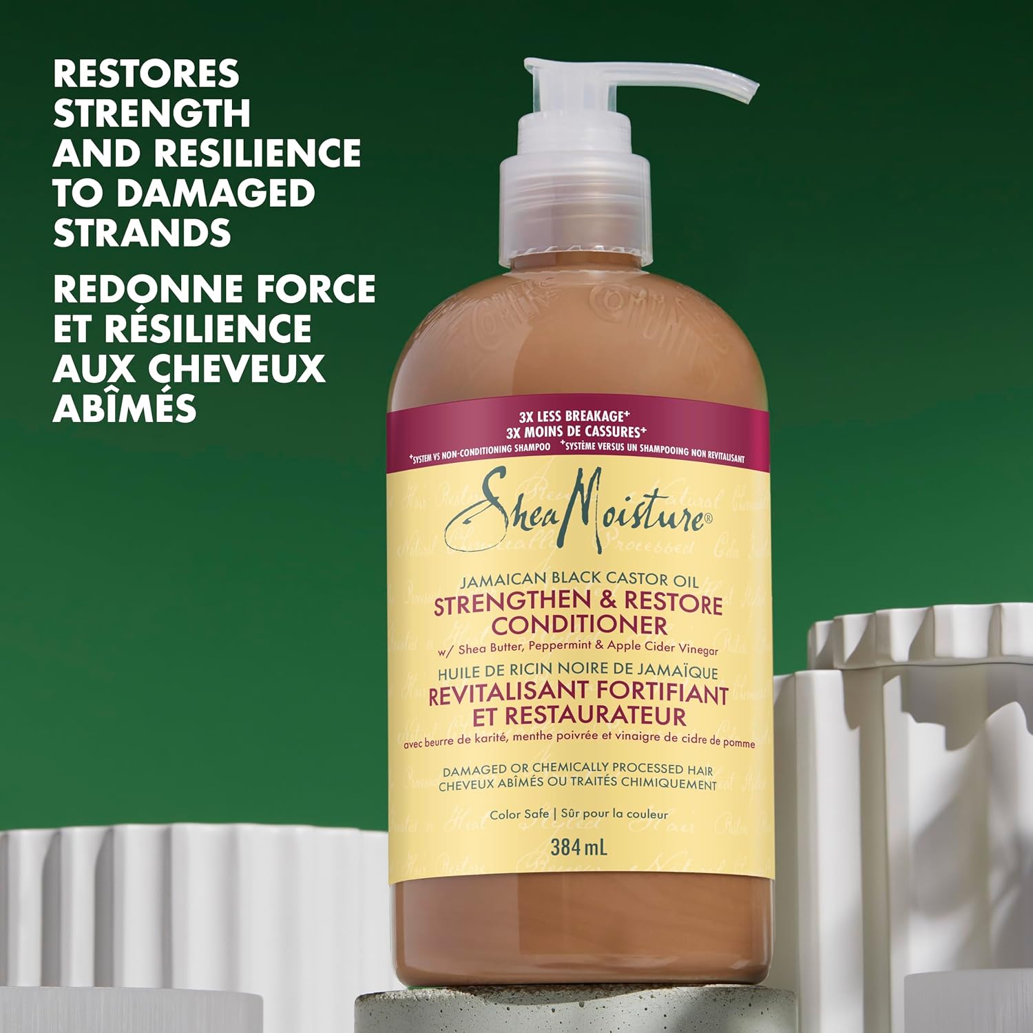 Shea Moisture Jamaican Black Castor Oil Conditioner is a rinse-out strengthening conditioner that restores resilience and moisture to strands