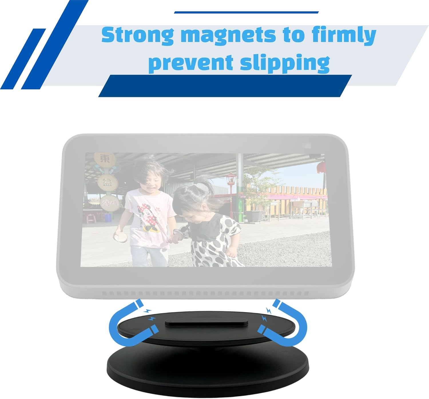 ☑️【Magnetic Attachment】This smart speaker holder with magnetic attachment, it is very simple and secure to hold your Show 5 & Show 8 device tightly, and protect Show 5 & Show 8 from falling off.