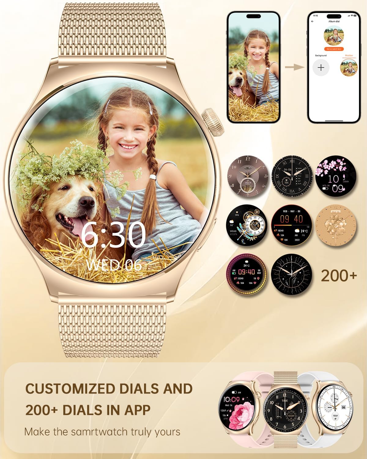 STAY CONNECTED EFFORTLESSLY: This smart watch for women seamlessly connects to your phone via Bluetooth and the companion App. When paired, you’ll make calls, receive call notifications and feel vibrations for new messages (WhatsApp, Instagram, etc.) directly on your wrist(can’t reply to messages). But smartwatch for women also supports voice assistants like Siri and Bixby, allowing hands-free calling and messaging, so you can stay connected effortlessly with this women smart watch
