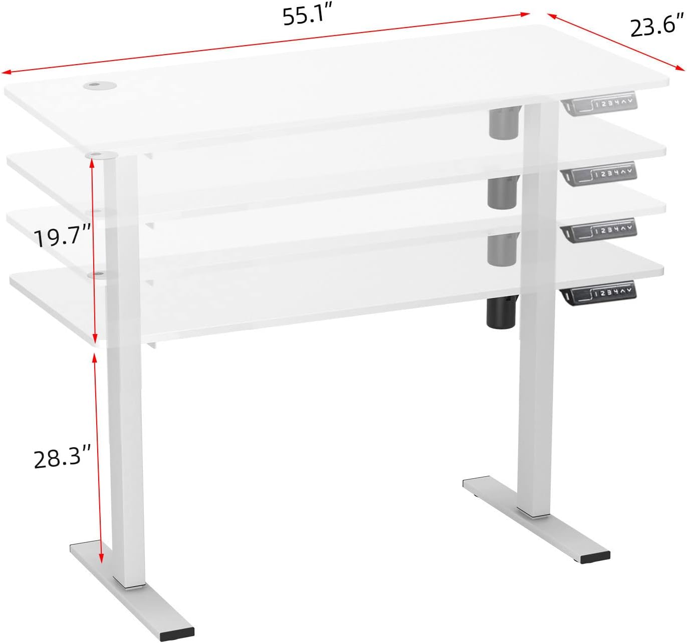 soges 55 Inch Electric Standing Desk Ergonomic Height Adjustable Computer Desk Sit Stand Desk Home Office Desks White Standing Desk, White,10NBZYELT-140WNA-CA