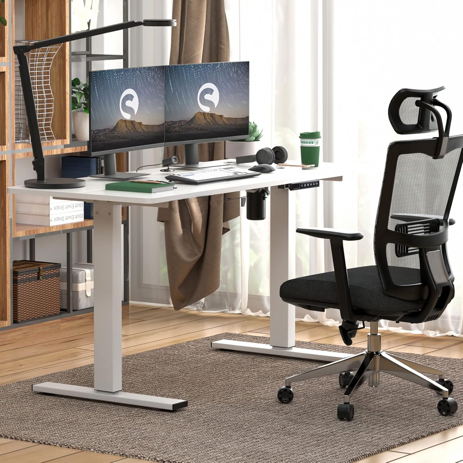 13 reviews for soges 55 Inch Electric Standing Desk Ergonomic Height Adjustable Computer Desk Sit Stand Desk Home Office Desks White Standing Desk, White,10NBZYELT-140WNA-CA