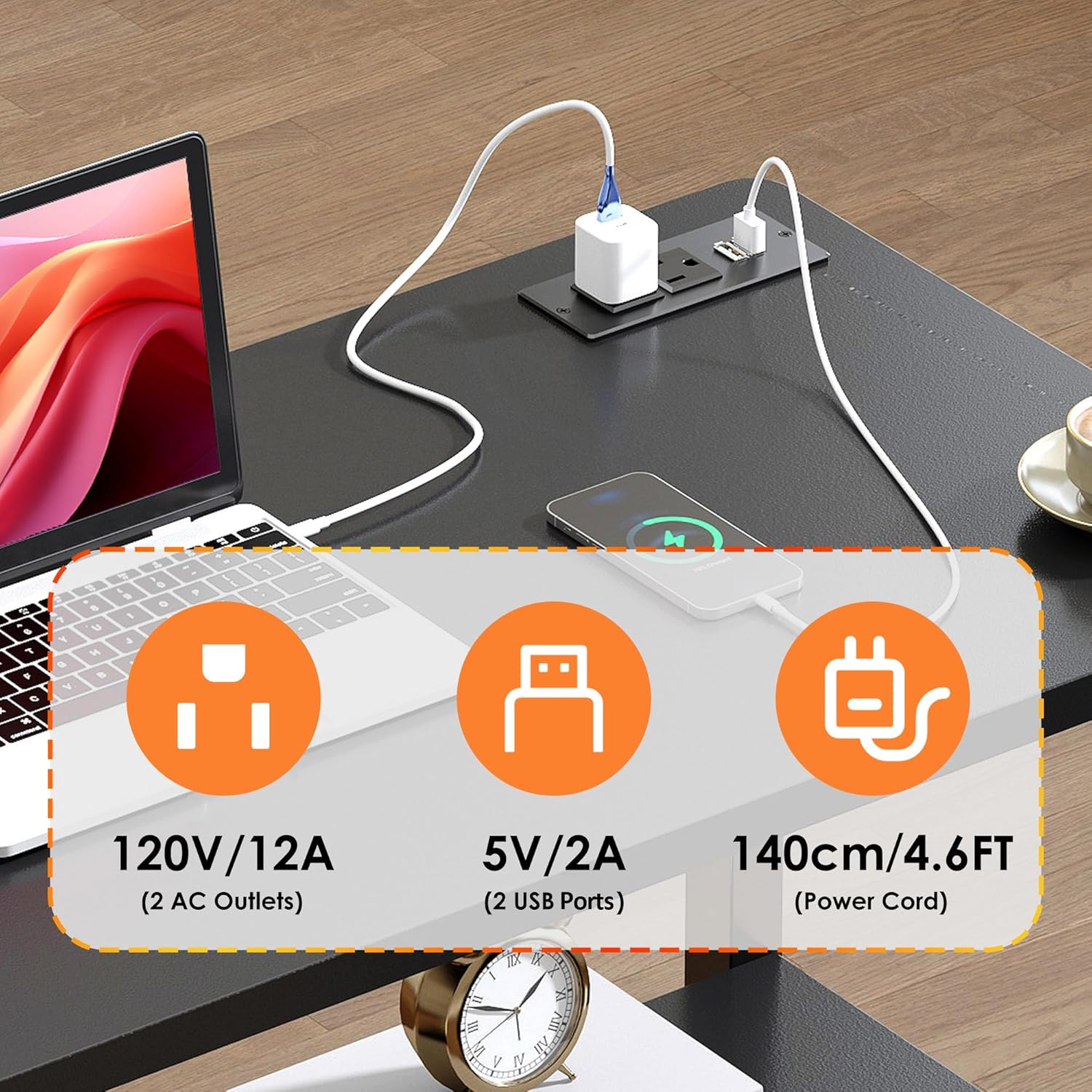 Laptop Desk with Outlets and USB Ports:The end table with charging station includes 2 standard outlets and 2 usb ports, making it easy to charge your phone, ipad, desk lamp or even laptop. Perfect for dormitory, living room, bedside. The power cord of our nightstand is 4.6 feet long, providing great convenience for daily use.