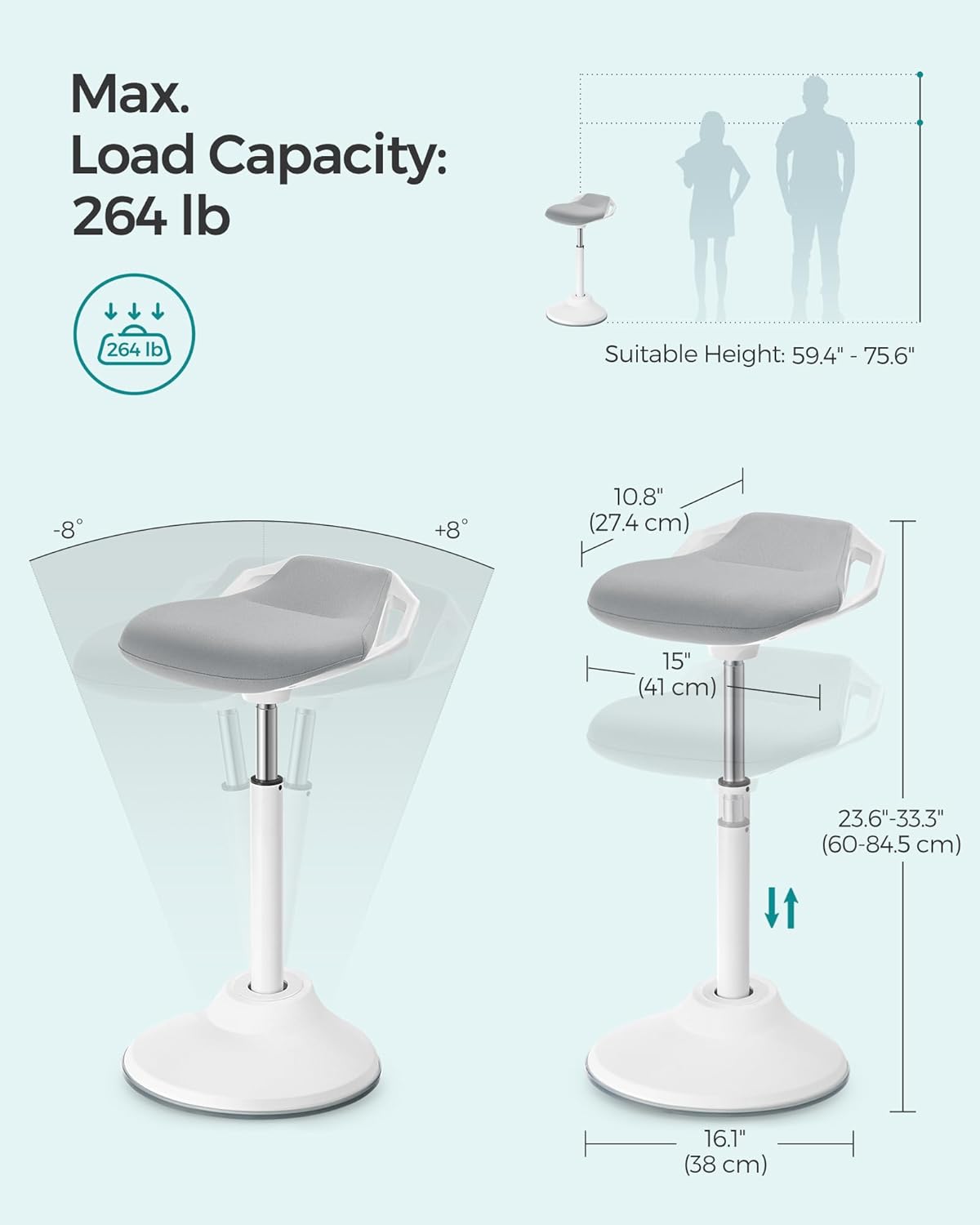 Buy something else.I bought this hoping to help take off some weight at my standing desk, and help with posture. It doesn’t lean forward enough, and has begun to creak under any amount of weight shifting on top of it. I’m not a particularly heavy person.Customer support dragged their feet on my return until they no longer had to return it, so I’m stuck with this wildly uncomfortable, squeaky, piece of garbage.Find something else, this isn’t it.