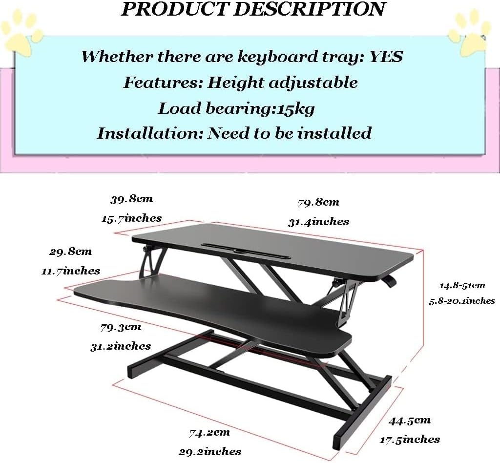 💻【Adjustable Desktop Workstation】: The height of this desk is adjustable at 14.8-51cm/5.8-20.1 inches, allowing you to stand or sit alternately to work, helping to reduce muscle tension, relieve stress and improve work efficiency while working