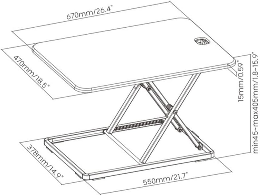 ERGONOMIC WORKSTATION: Standing height can be set up to 1.8-15.9″- it gives you the opportunity to work in a more ergonomic and comfortable position, easing pain that you may experience in your eyes, neck, and shoulders from sitting for extended periods at a time.