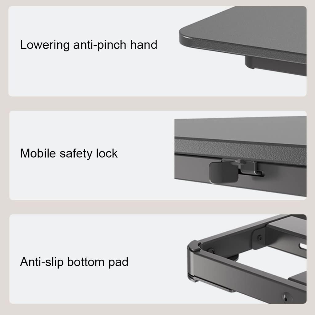 Simple to raise the desk converter from the lowest position simply squeeze the lever on the side of the desk and raise it to desired position.