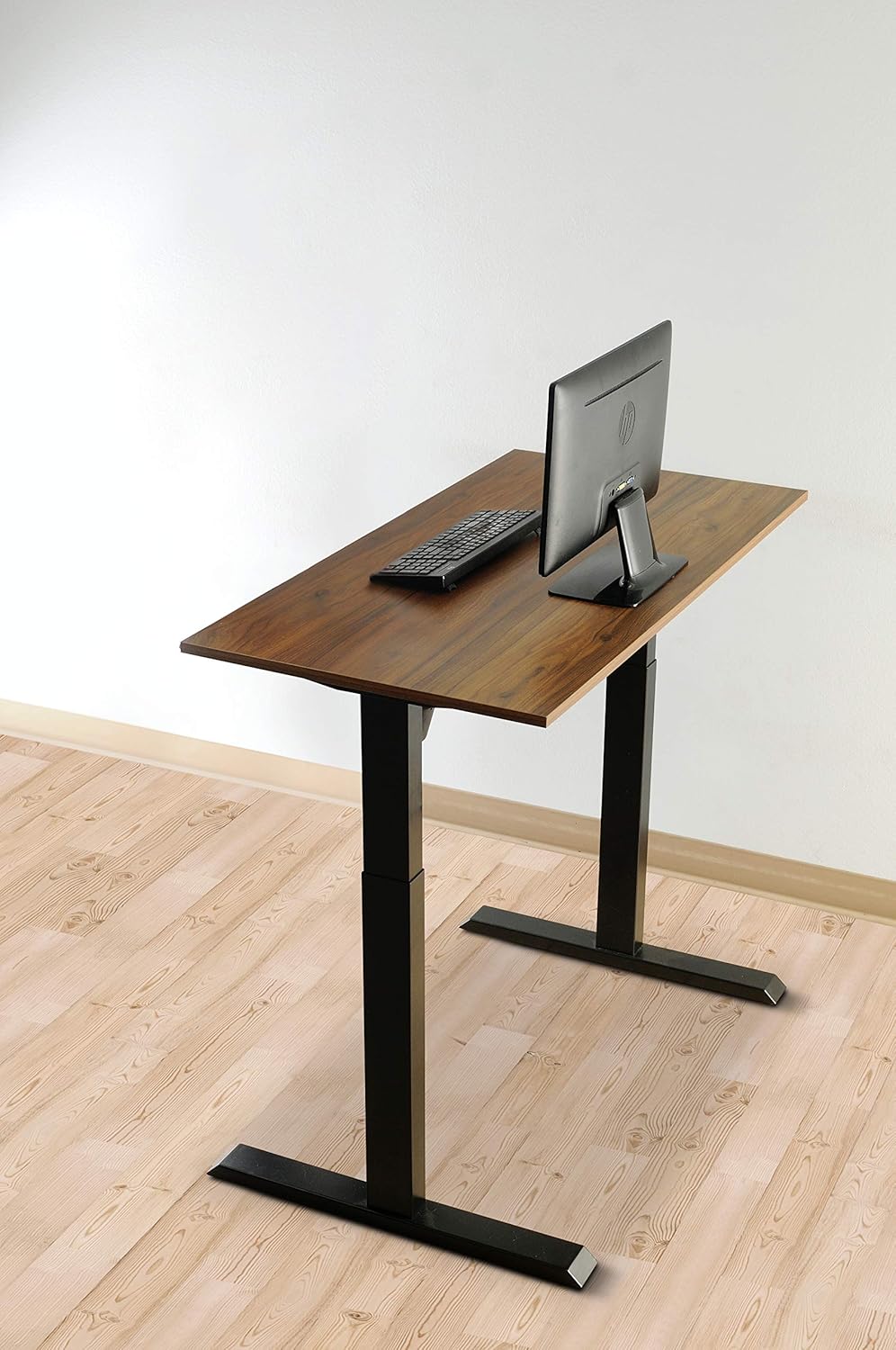 TechOrbits 47 Inch Electric Standing Desk Frame with Tabletop – Motorized Workstation Two Leg Stand Up Desk with Memory Settings and Telescopic Sit Stand Height Adjustment (Black Frame/Wood Brown Top