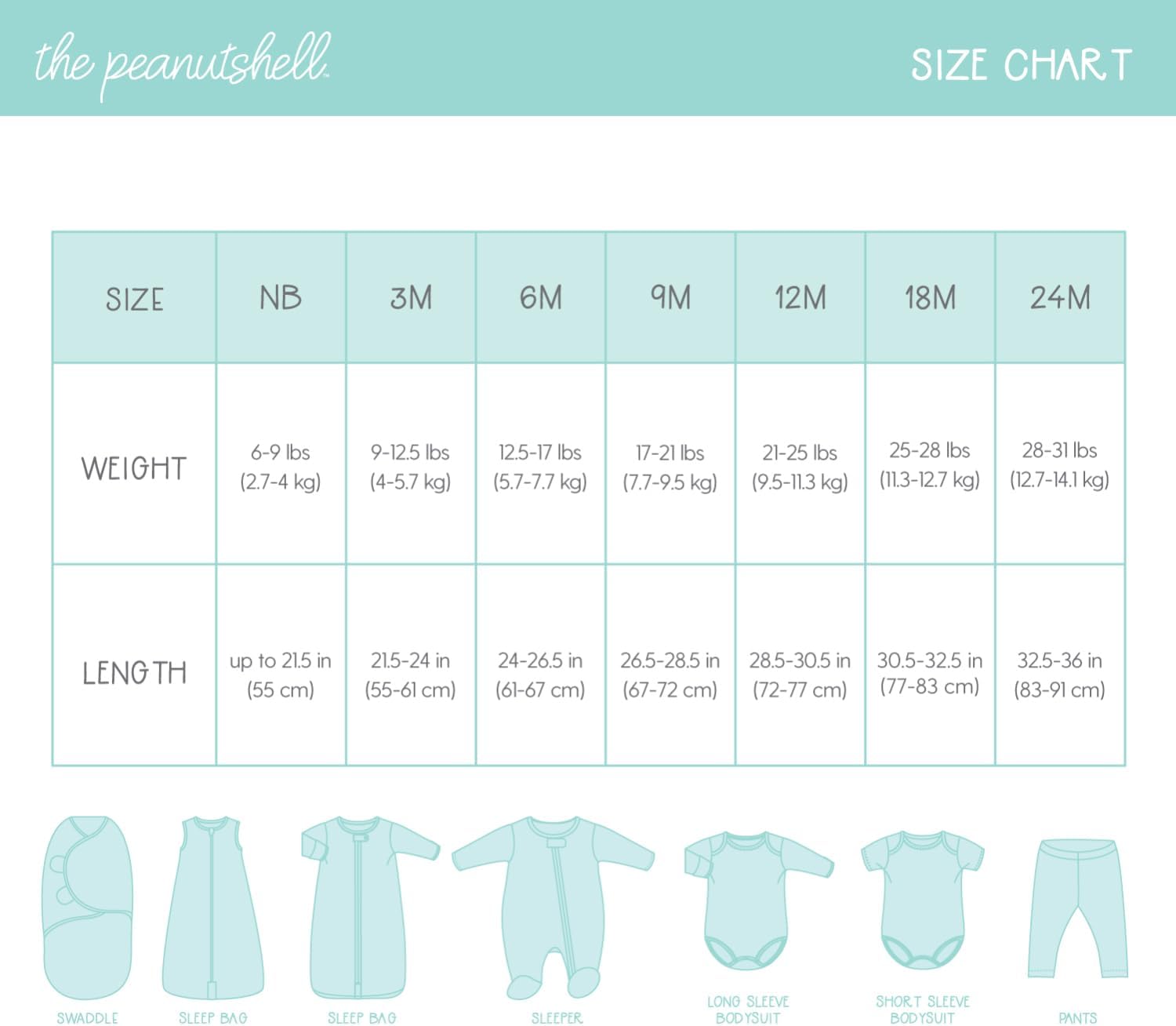 These are nice soft pants. I got the 12 month size for my 9 month old. Every pair of pants I’ve gotten in her size ride up and I guess are too short. The 12 month are a little long and have a little room in the waist but fit just fine. She can grow into these a bit so I’m happy with my size choice.I think they are true to size, my baby might have slightly longer legs. The pants don’t shrink either.I’m taking one star off because the tags are super long but I don’t want to cut them off because I won’t know the size of them when I hand down her clothes.