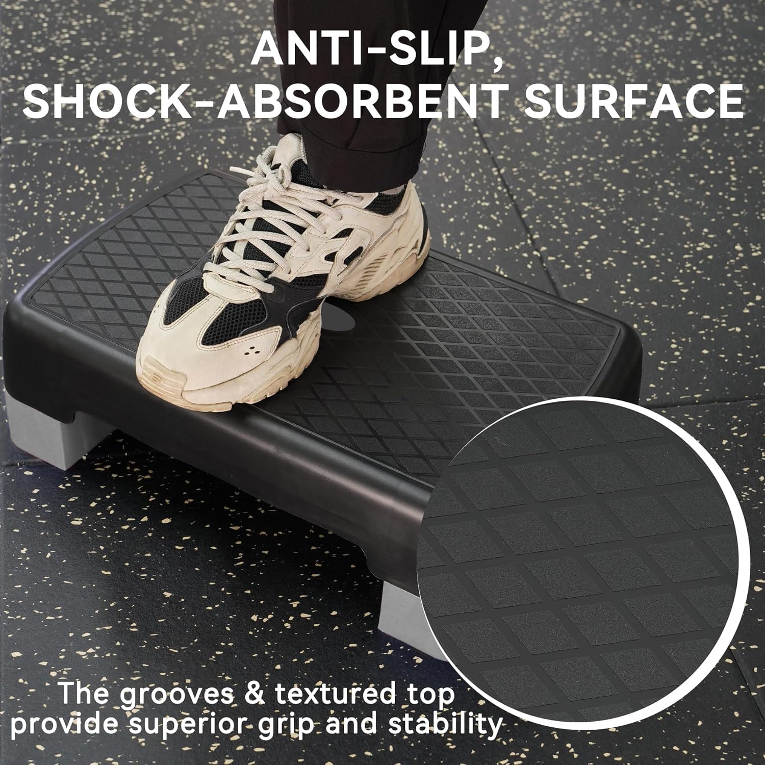 [Anti-Skid Rubber Feet]: Equipped with thick rubber feet, this stepper stays securely in place during high-intensity workouts, protecting your floor from scratches.