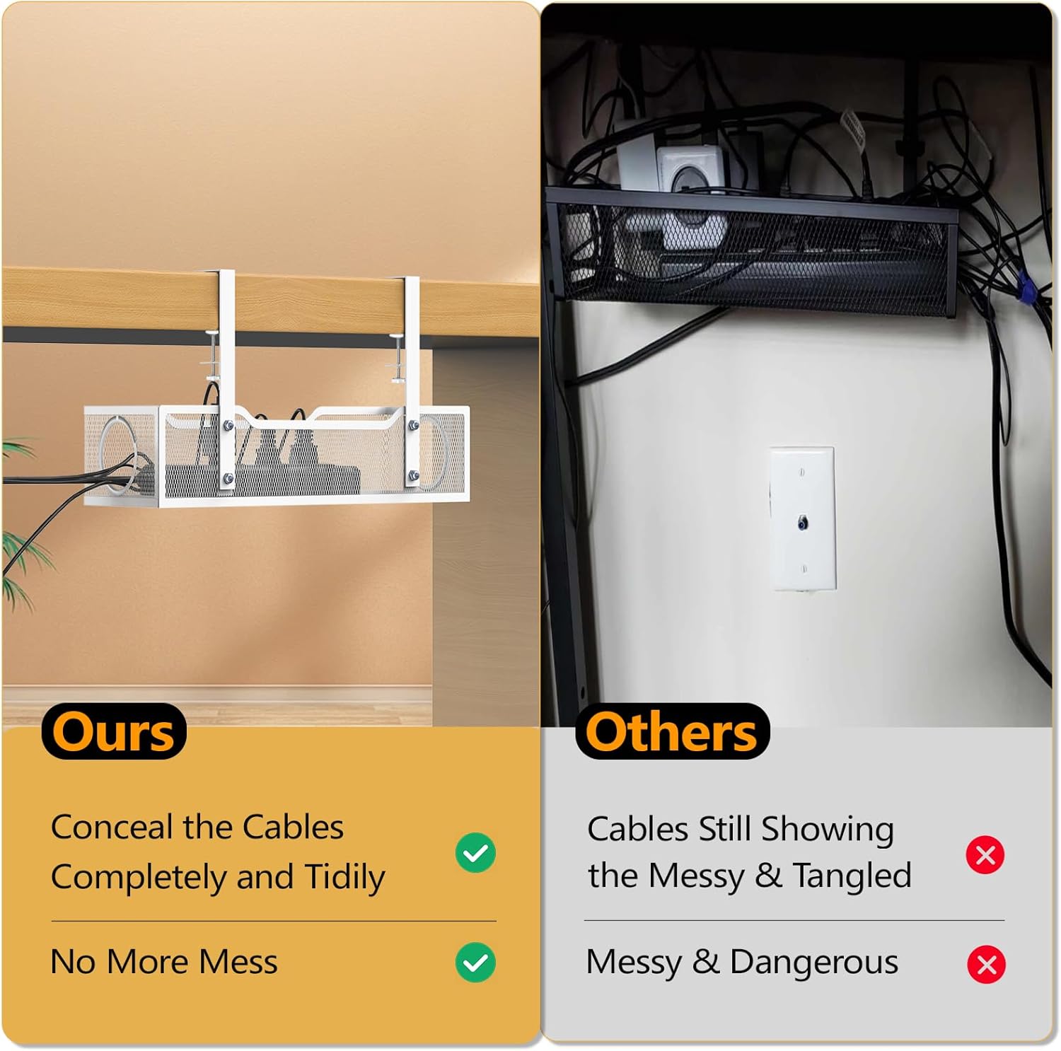 【Durable & High-Quality Materials】Crafted from powder-coated steel, this cable tray is rust-resistant, sturdy, and capable of holding up to 10kg (22lbs). Its robust construction ensures long-lasting performance while maintaining a sleek and professional appearance.