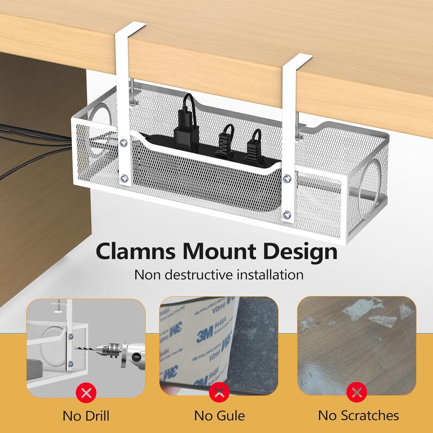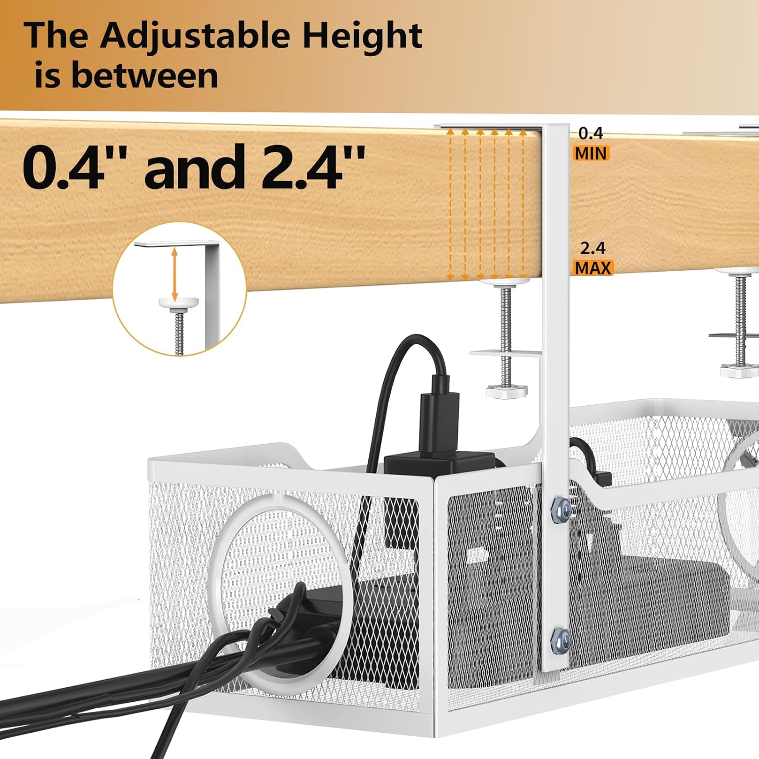 【No Drilling Required & Easy Installation】Our cable management tray features a user-friendly clamp mount design, requiring no drilling or additional tools. Simply secure it to your desk and adjust its position as needed without leaving any marks or scratches, thanks to the EVA anti-scratch pads. Suitable for desks 0.2″ to 2.4″ thick, providing flexibility for various office setups.