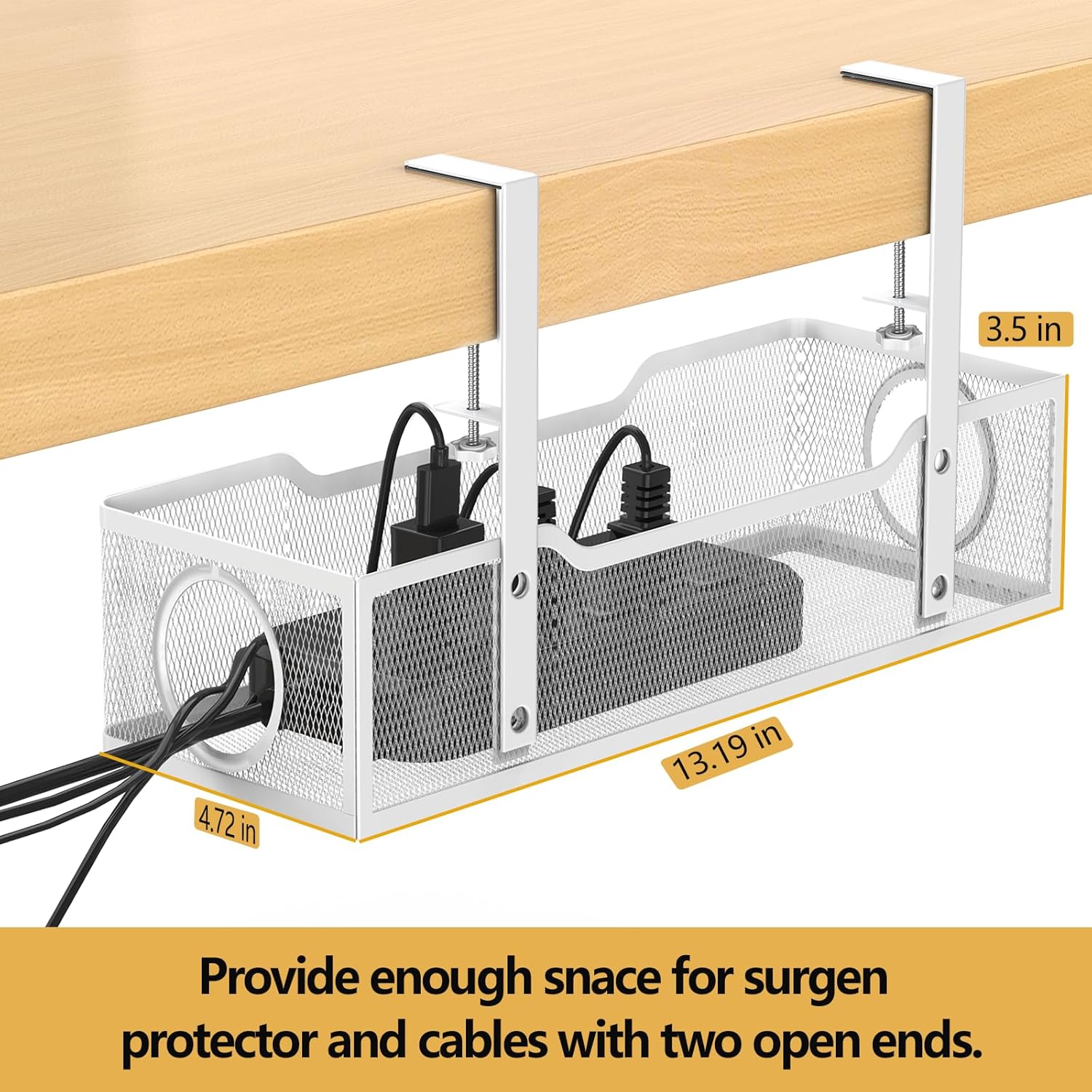 This metal frame tray is durable. It keeps all the wires and extension cords organized. This was easy to install without needing to drill it and it’s well hidden behind my computer desk