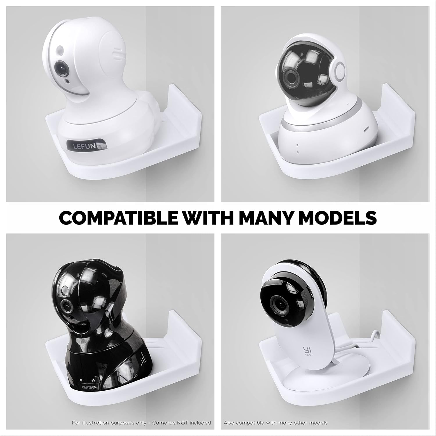 UNIVERSAL CORNER TILTED SHELF MOUNT: Need to see your entire room, not miss anything, have no blind spots, then our tilted shelf is the ideal product for you. Designed to work with almost any home security camera, baby monitor, pet camera & most other types of home & personal camera systems. Please check dimension chart for compatibility.