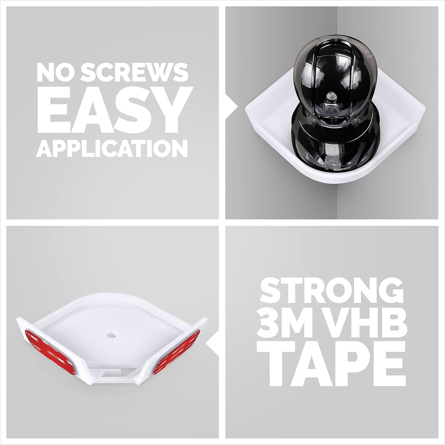 DRILL FREE, NO SCREWS IN THE WALL: Easy to install, using super strong 3M VHB Tape, our shelf can be installed in minutes without the need of any tools. No damage to your walls, no calling a handy person, simply remove the adhesive backing, mark out where you want to put the shelf, press into place and your done. It is recommended to wait at least 2hrs before installing camera on shelf so that adhesive reaches max bond strength.